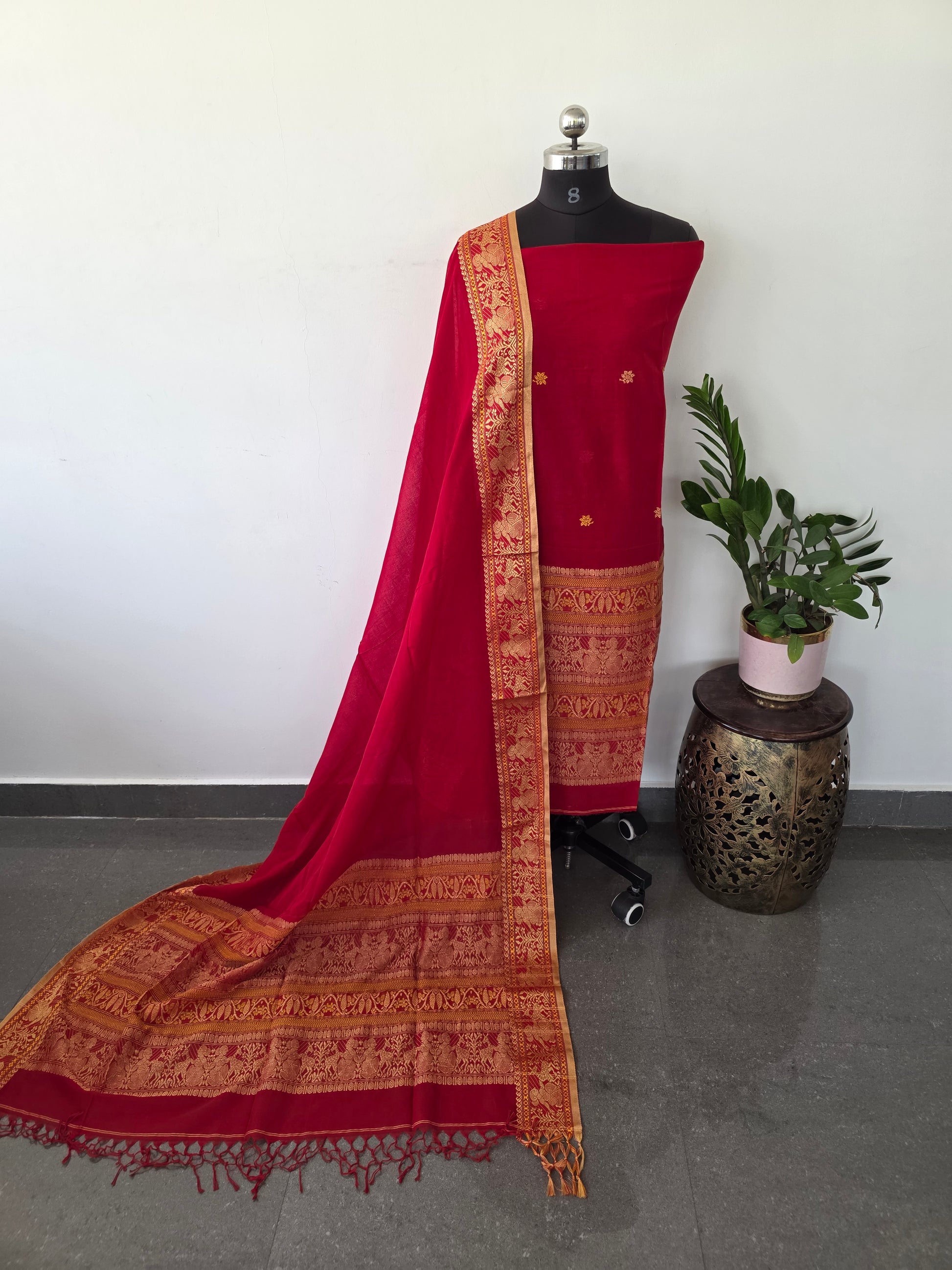 All over baluchari needle woven work by Human hands Pure Mercerised Cotton 120-Count Baluchari Suit Sets