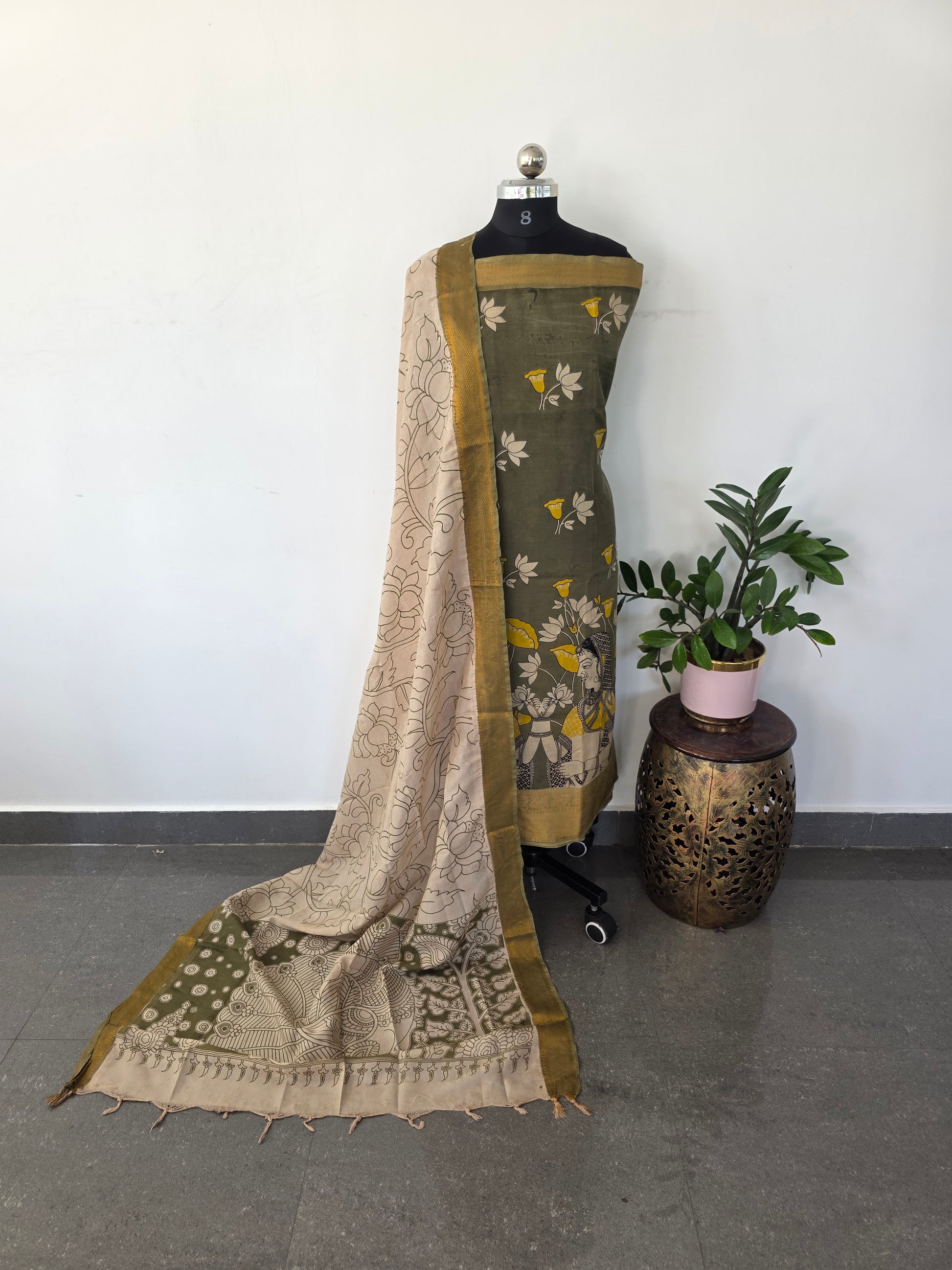 Chennuri authentic pure kalamkari silk top with Nizam border, including matching dupatta – note that the bottom is not included.