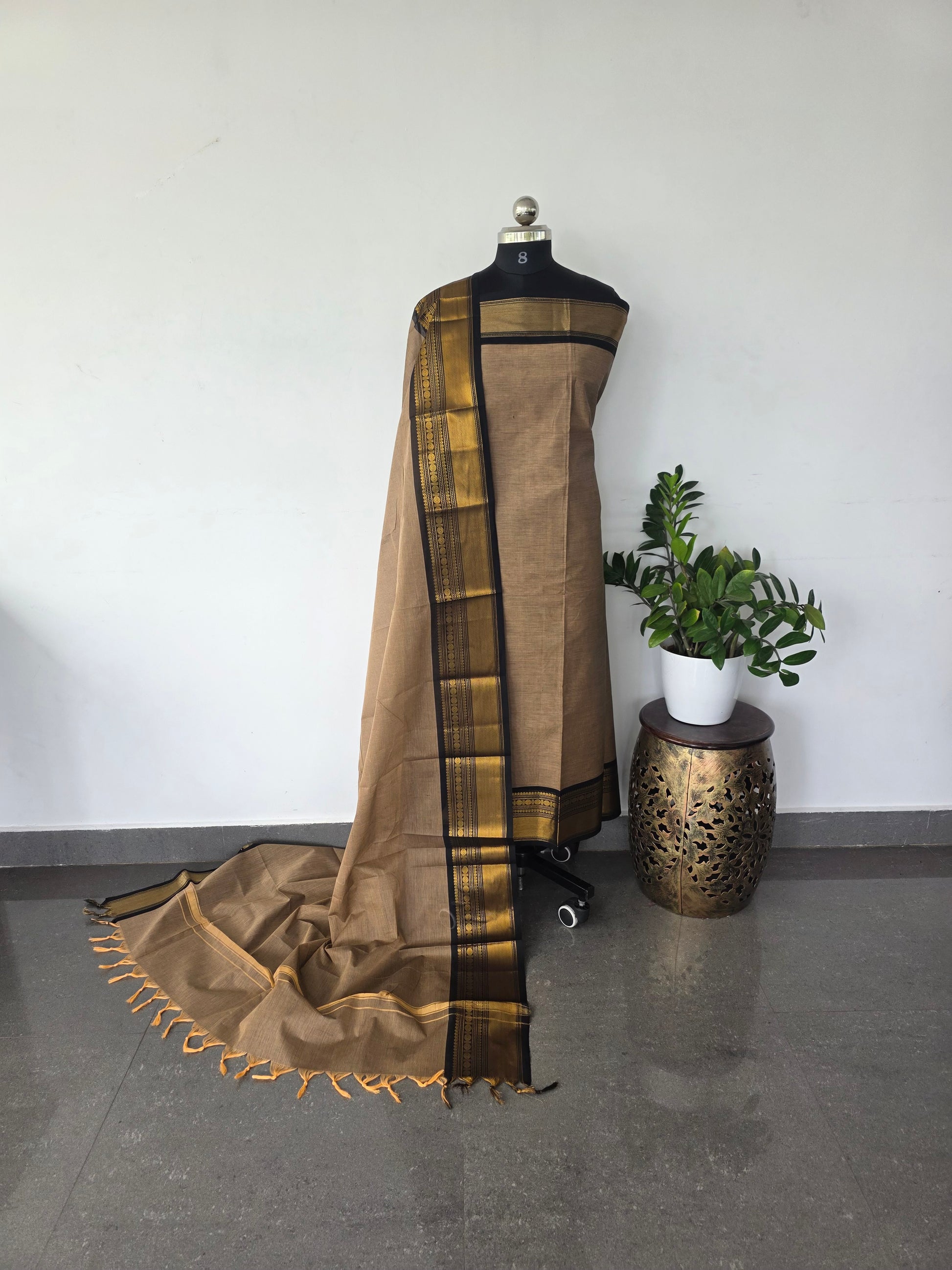 Top ,Duppatta - pure cotton with jacquard weavebin the body and rich zari border on both the sides [3 mtrs top and 2.5 mtrs duppatta ]