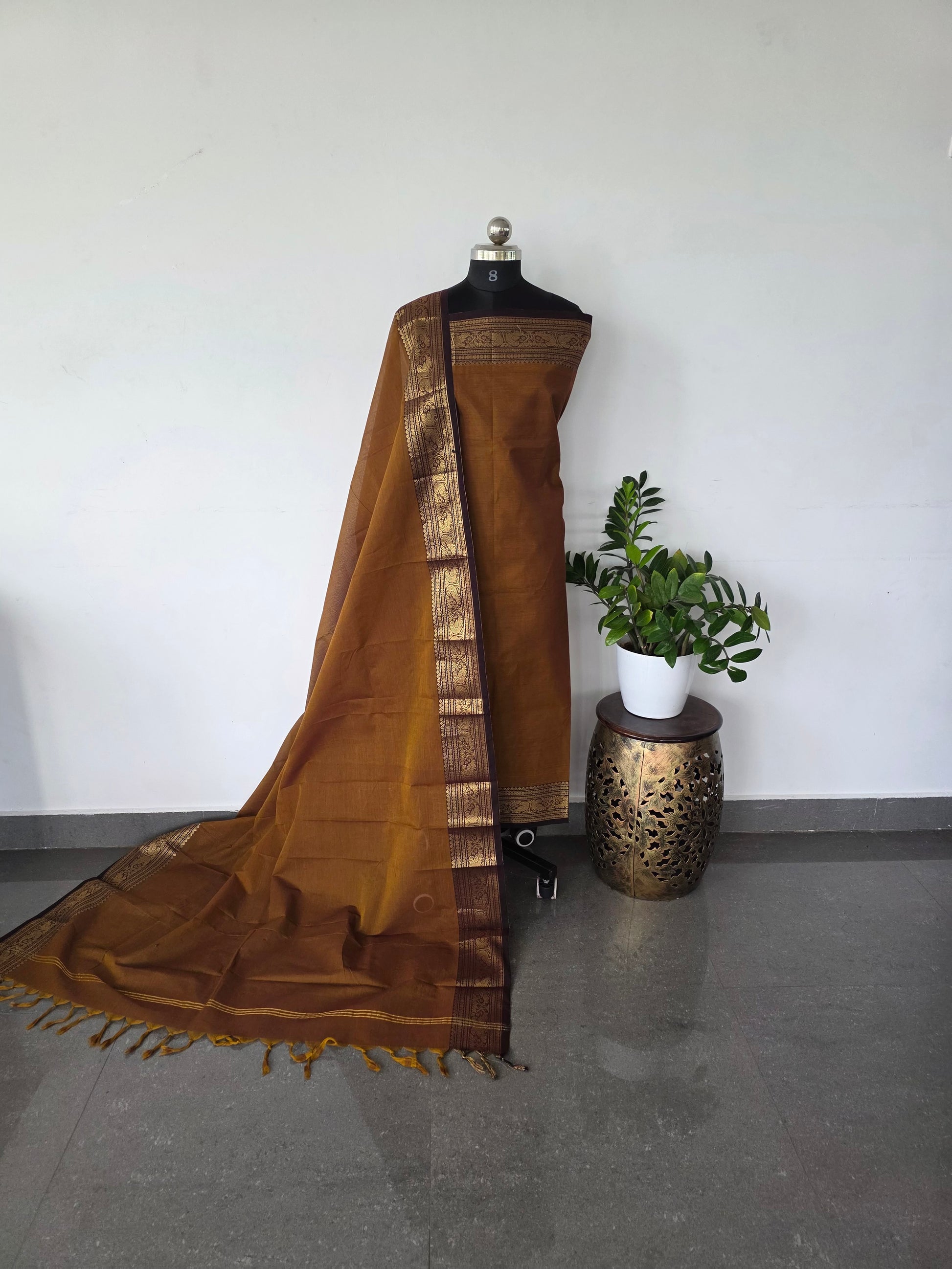 Top ,Duppatta - pure cotton with jacquard weavebin the body and rich zari border on both the sides [3 mtrs top and 2.5 mtrs duppatta ]