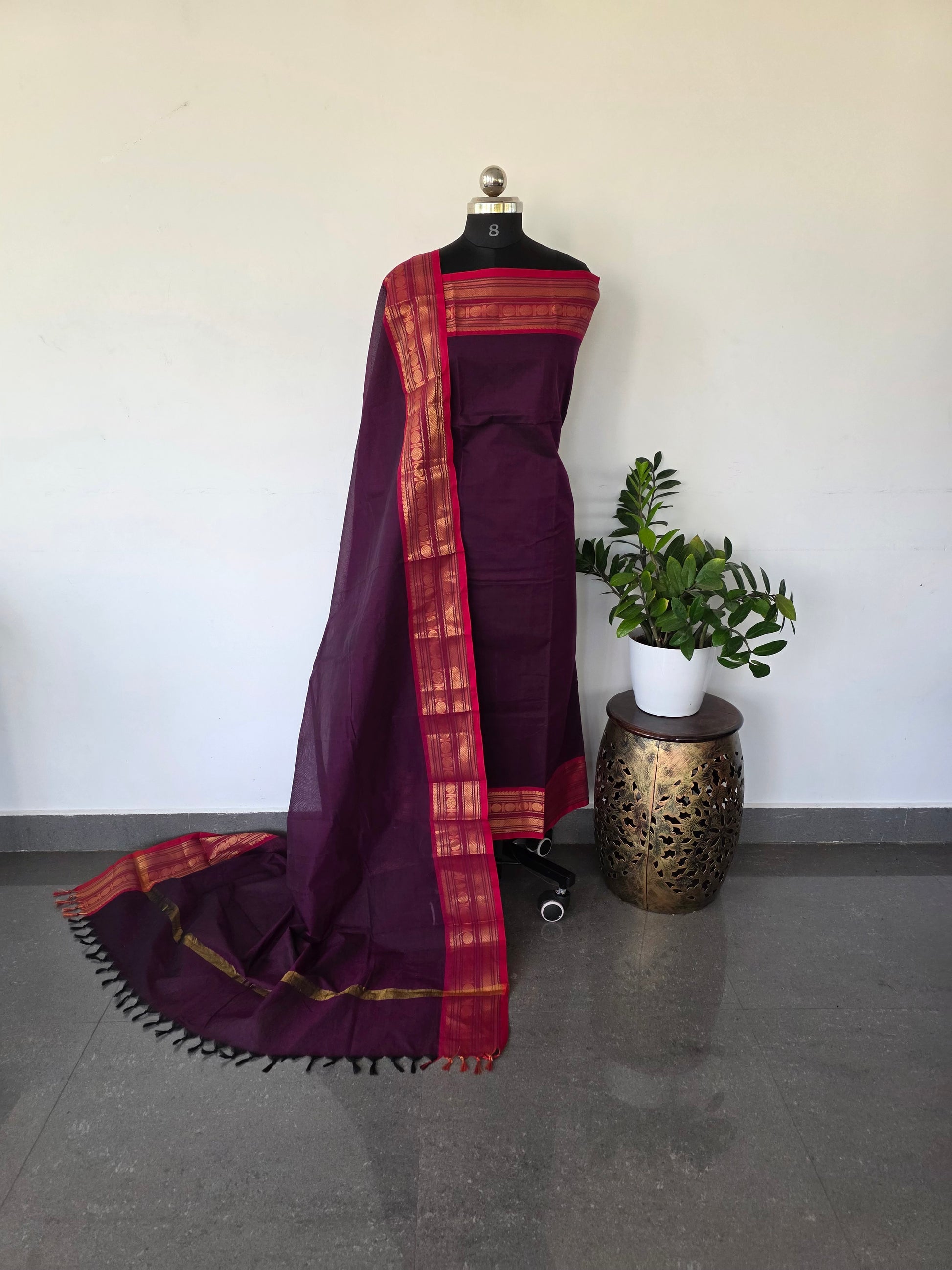 Top ,Duppatta - pure cotton with jacquard weavebin the body and rich zari border on both the sides [3 mtrs top and 2.5 mtrs duppatta ]