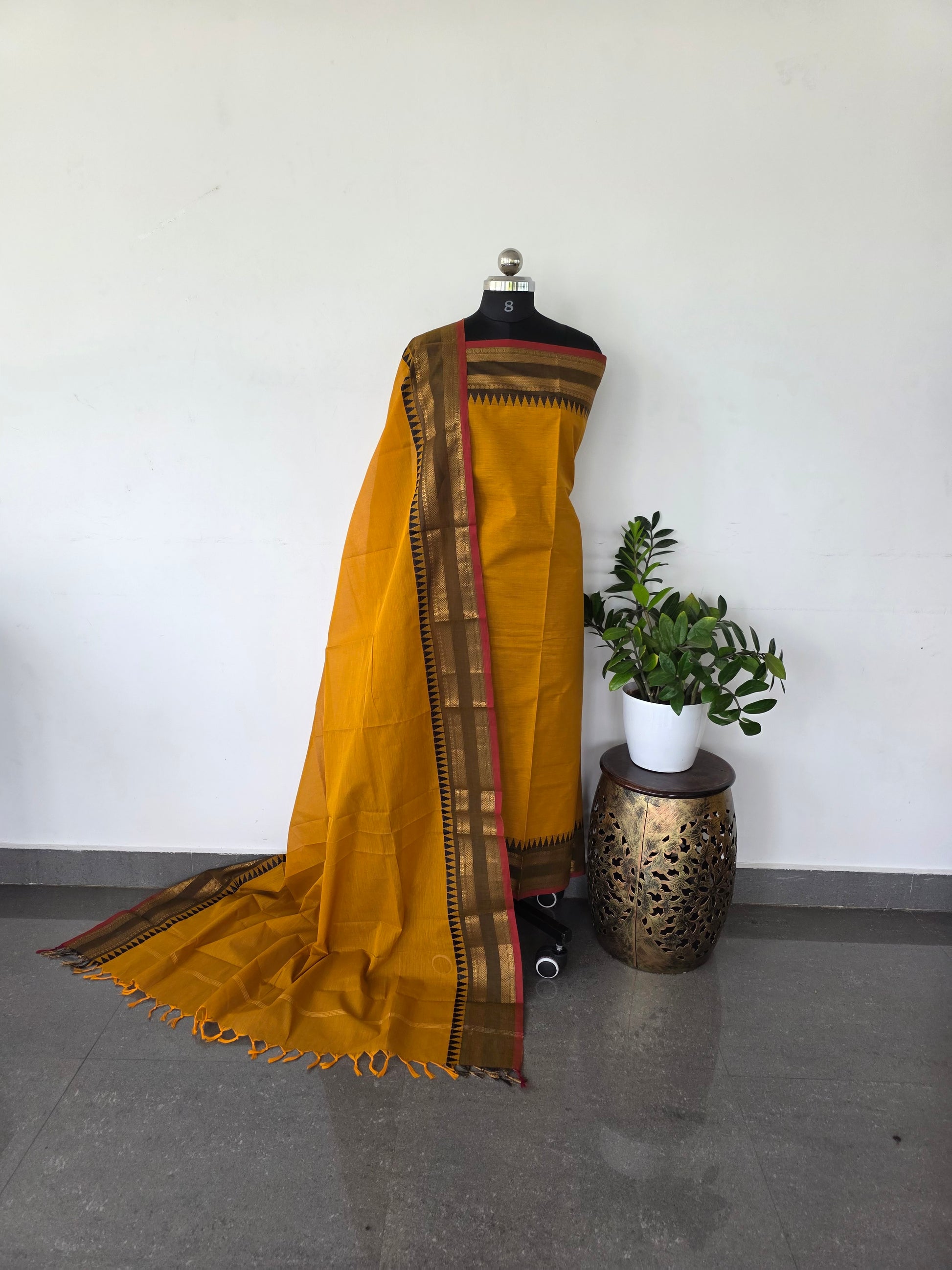 Top ,Duppatta - pure cotton with jacquard weavebin the body and rich zari border on both the sides [3 mtrs top and 2.5 mtrs duppatta ]