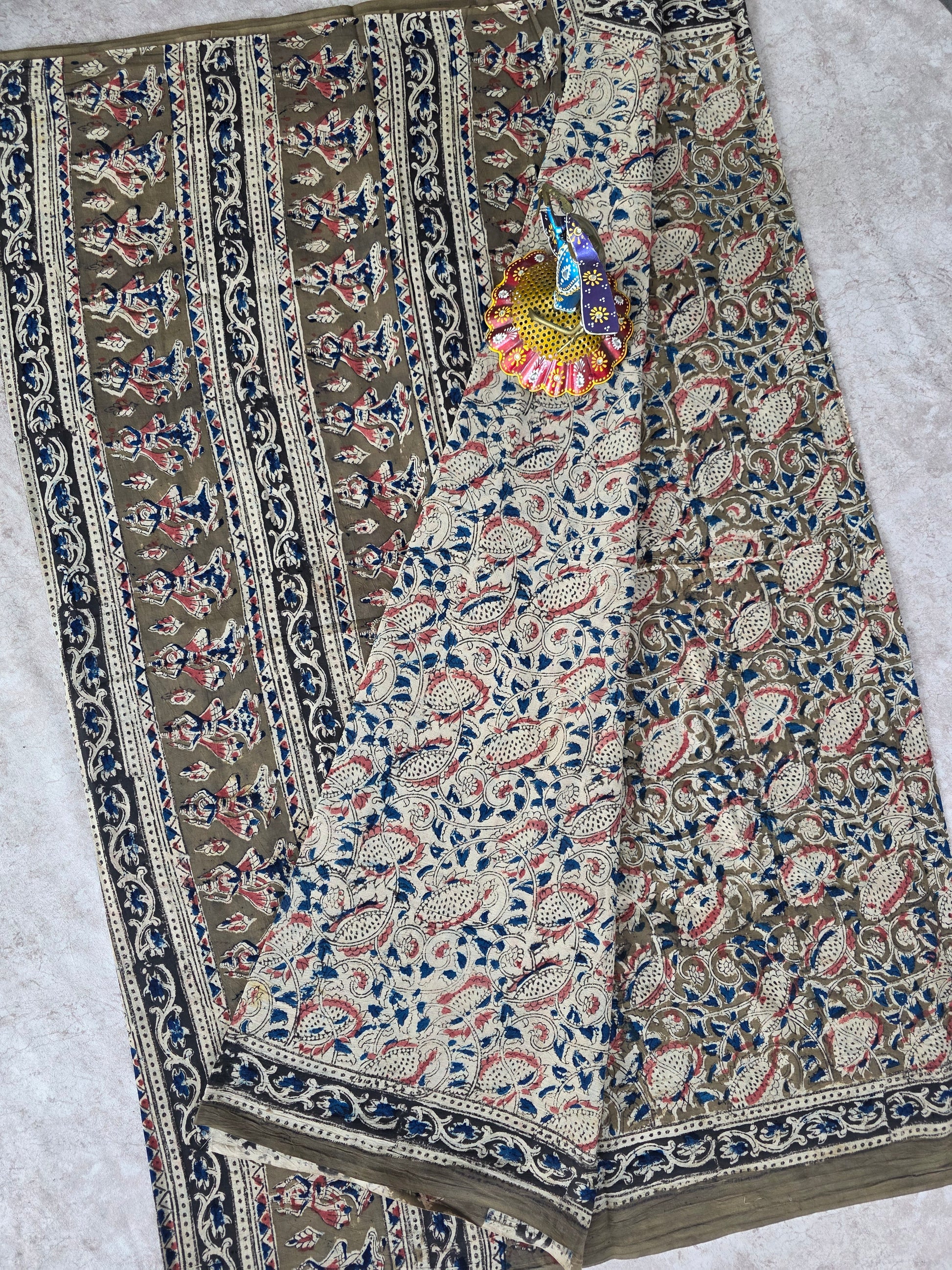 Genuine handblock kalamkari cotton saree accompanied by a matching blouse.