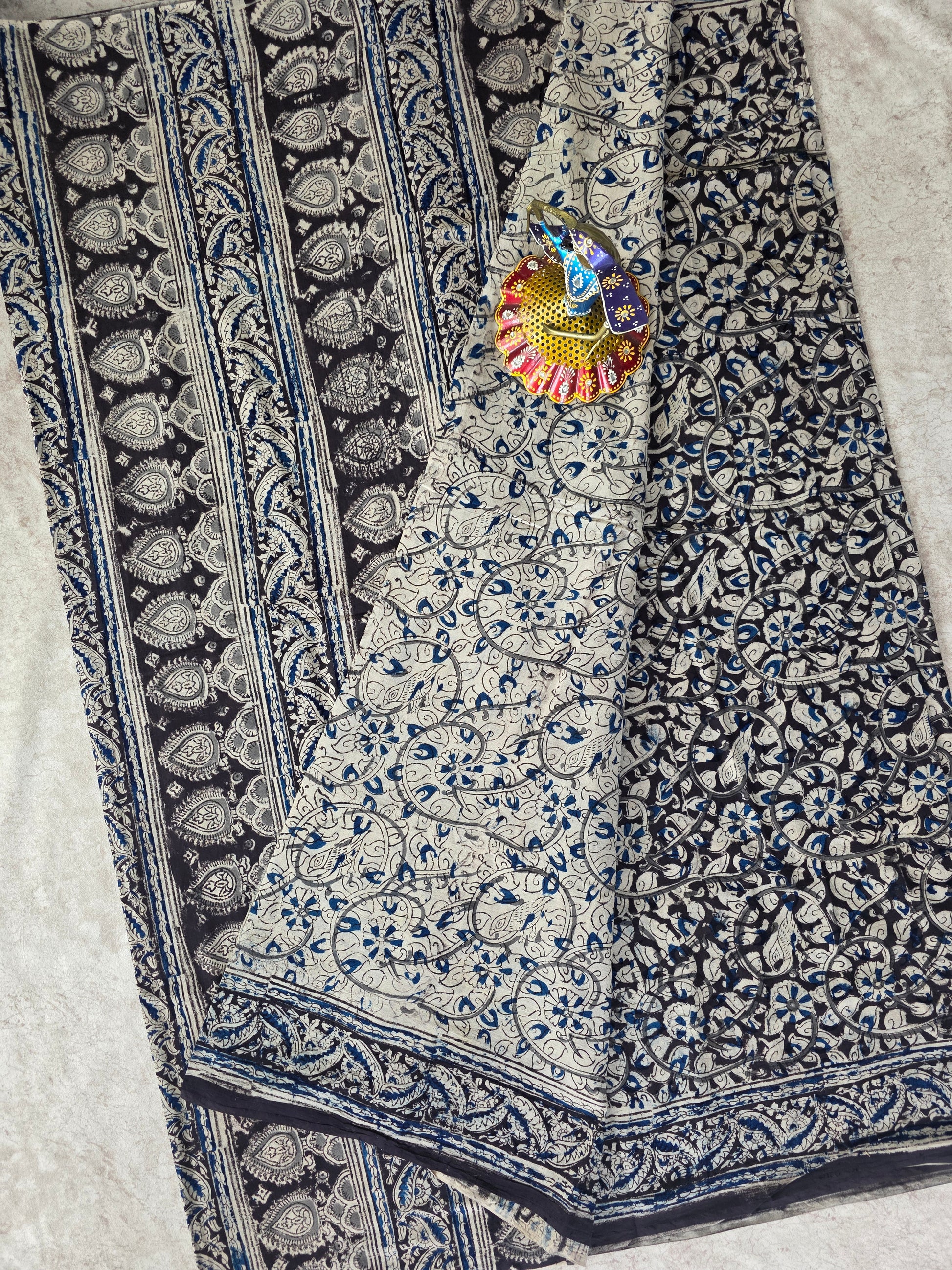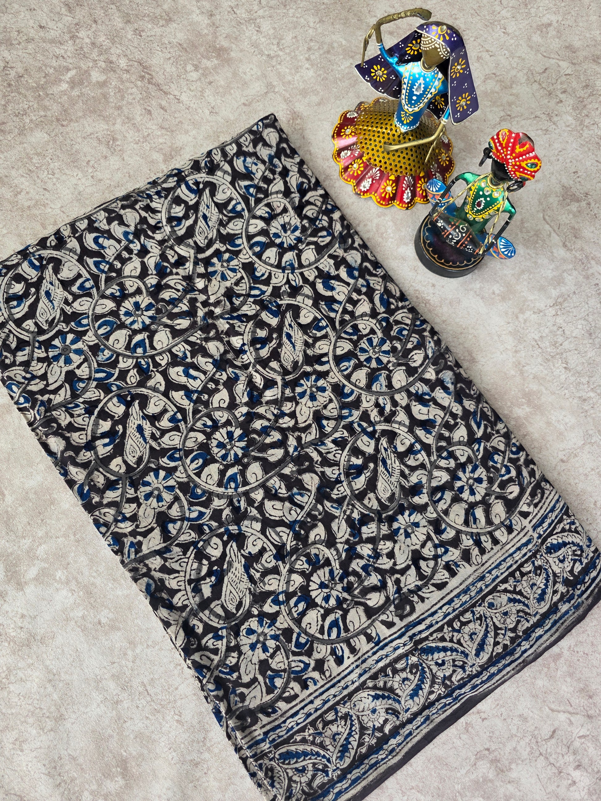 Genuine handblock kalamkari cotton saree accompanied by a matching blouse.