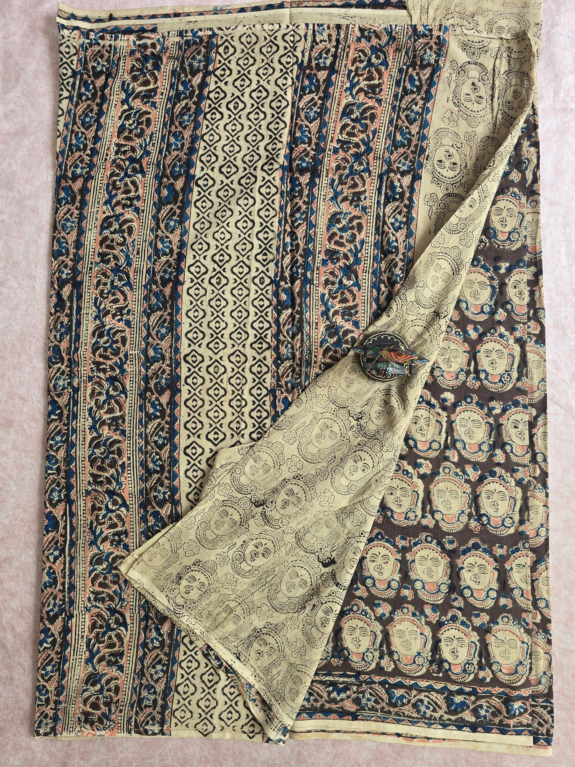 Artisanal handblock-printed pure cotton saree with coordinating blouse, crafted from premium cotton fabric. This traditional weave showcases intricate block-printed patterns, offering authentic ethnic appeal with everyday comfort and breathability ideal for warm climates.