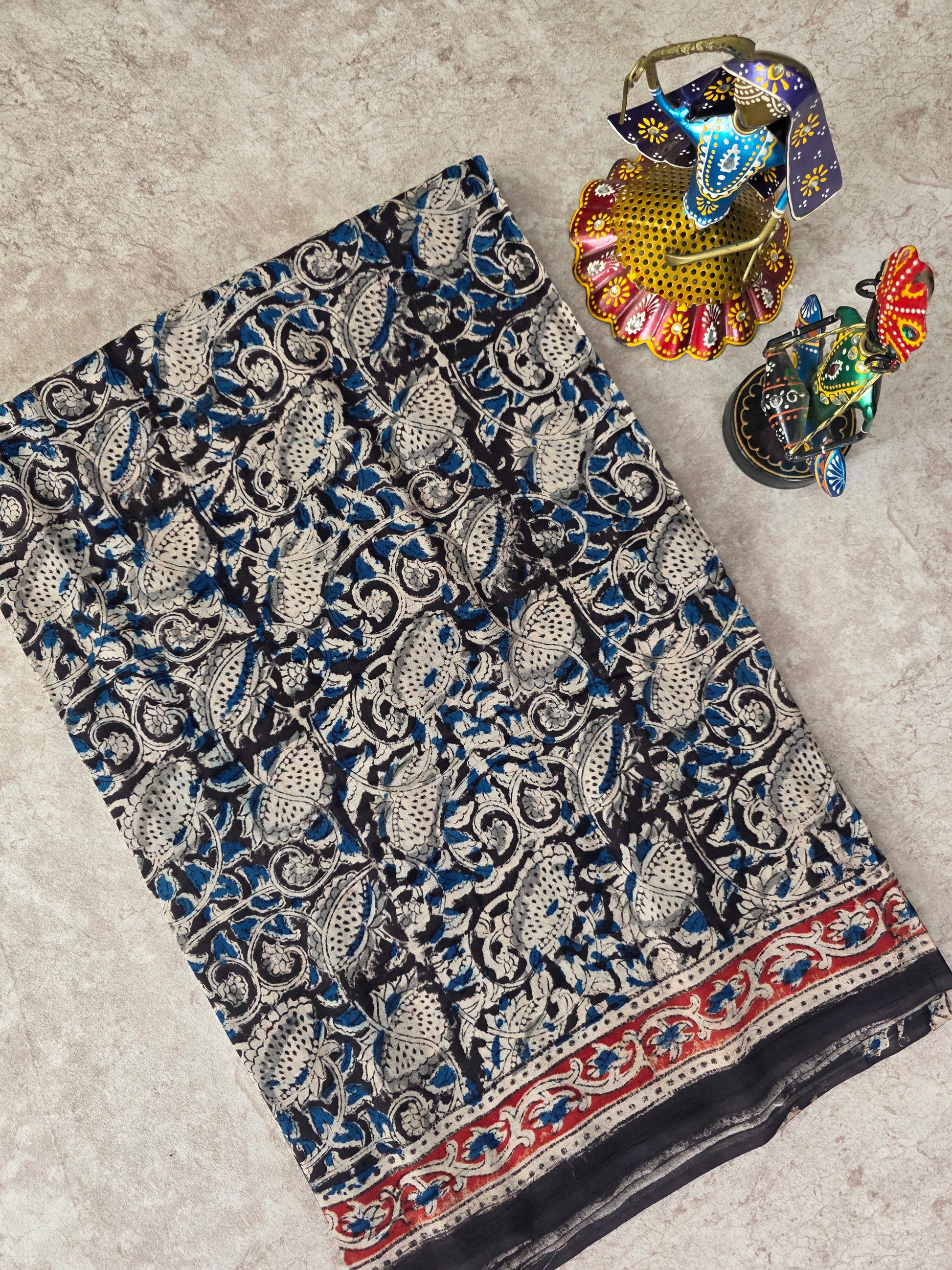 Genuine handblock kalamkari cotton saree accompanied by a matching blouse.