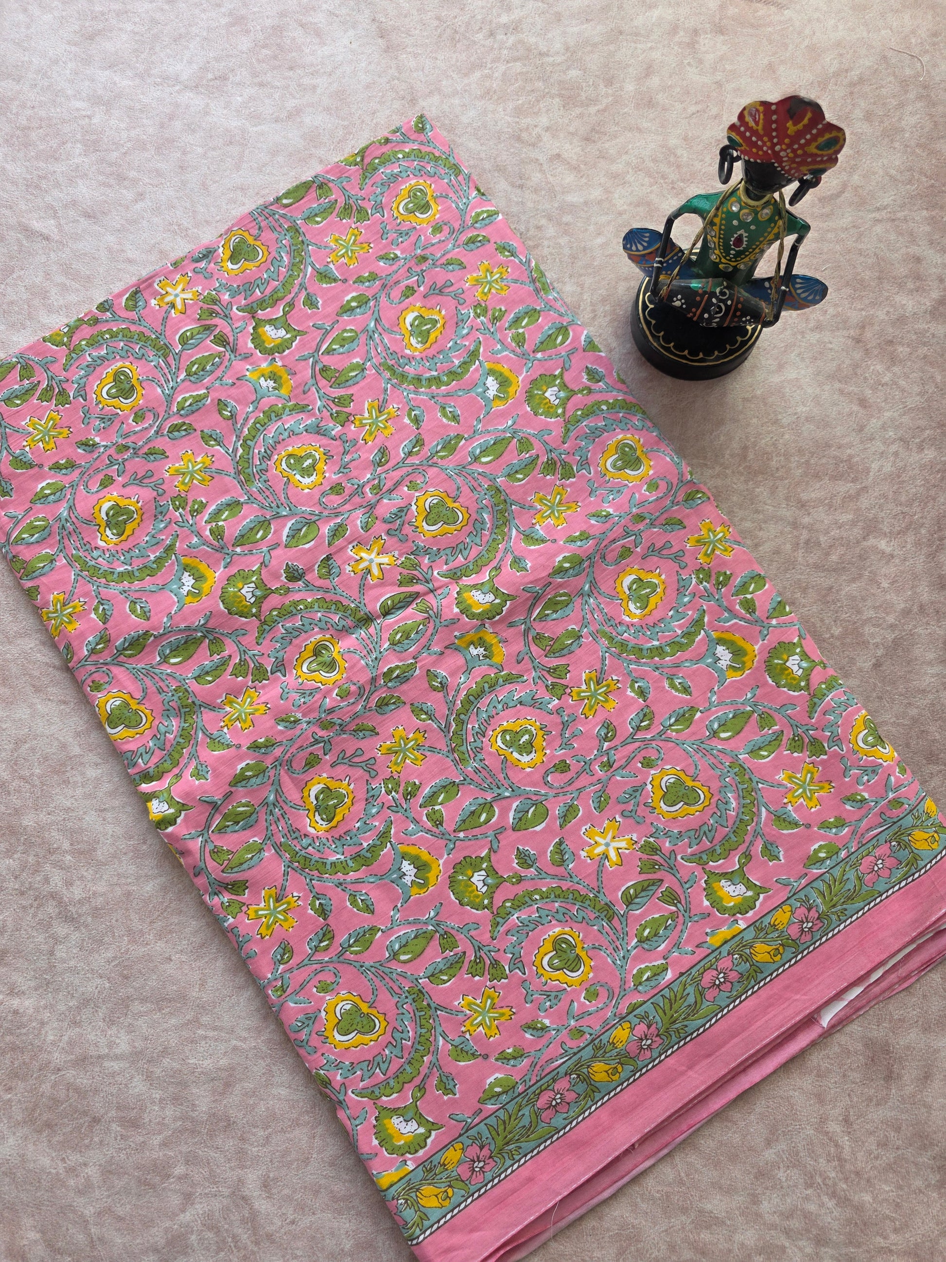 This Jaipuri cotton set features a Jaipur cotton top adorned with an elegant border, paired with a pure Jaipur cotton bottom. The set includes a pure Jaipur cotton shawl as a dupatta. Ideal for everyday use, it requires no additional lining for comfort and style.