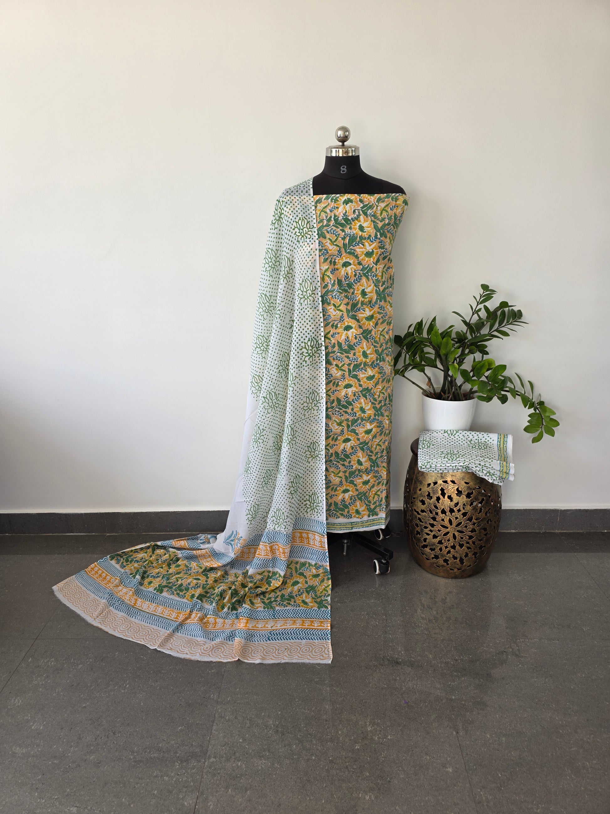 Jaipuri handblock cotton set - yellow