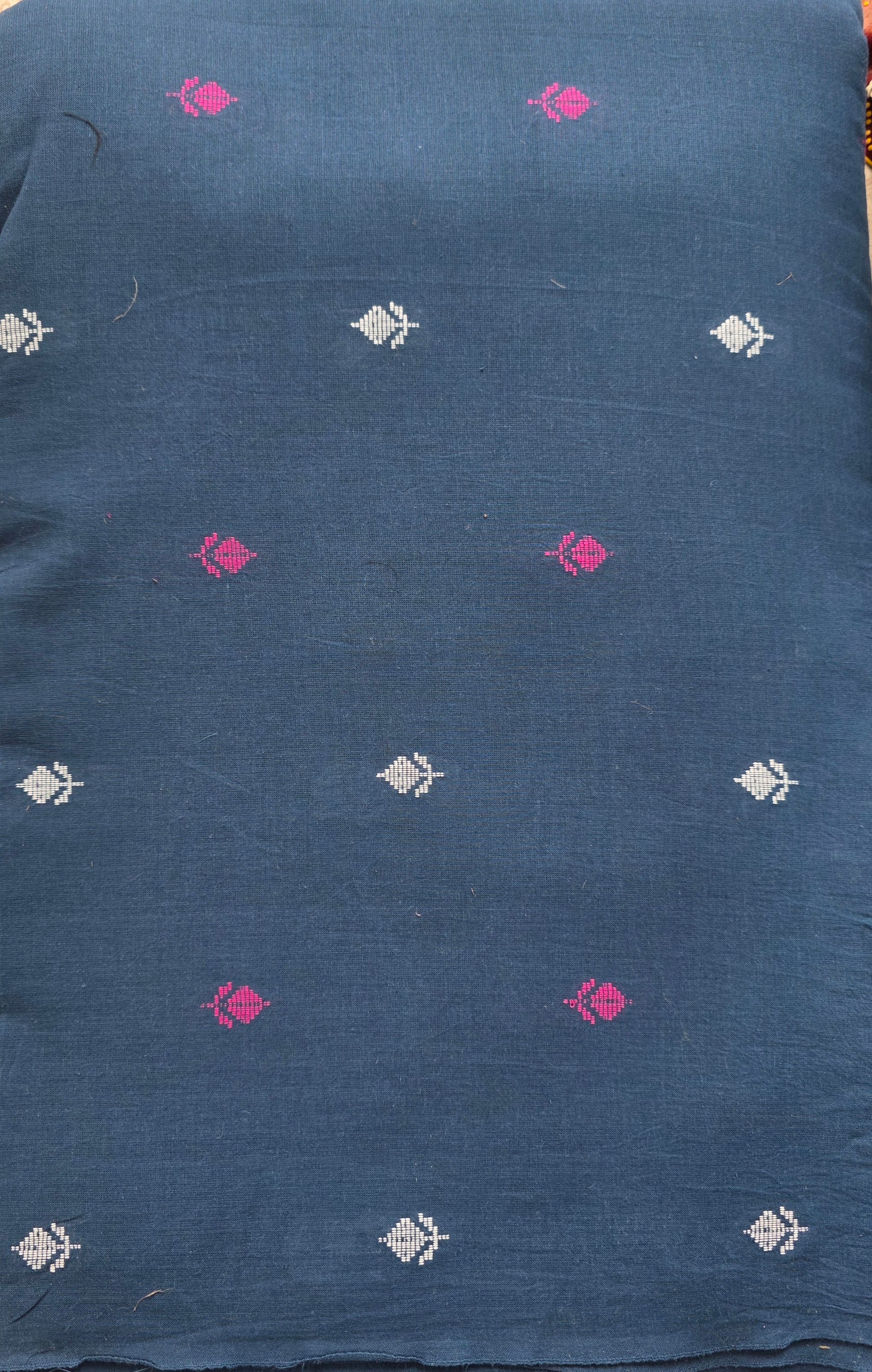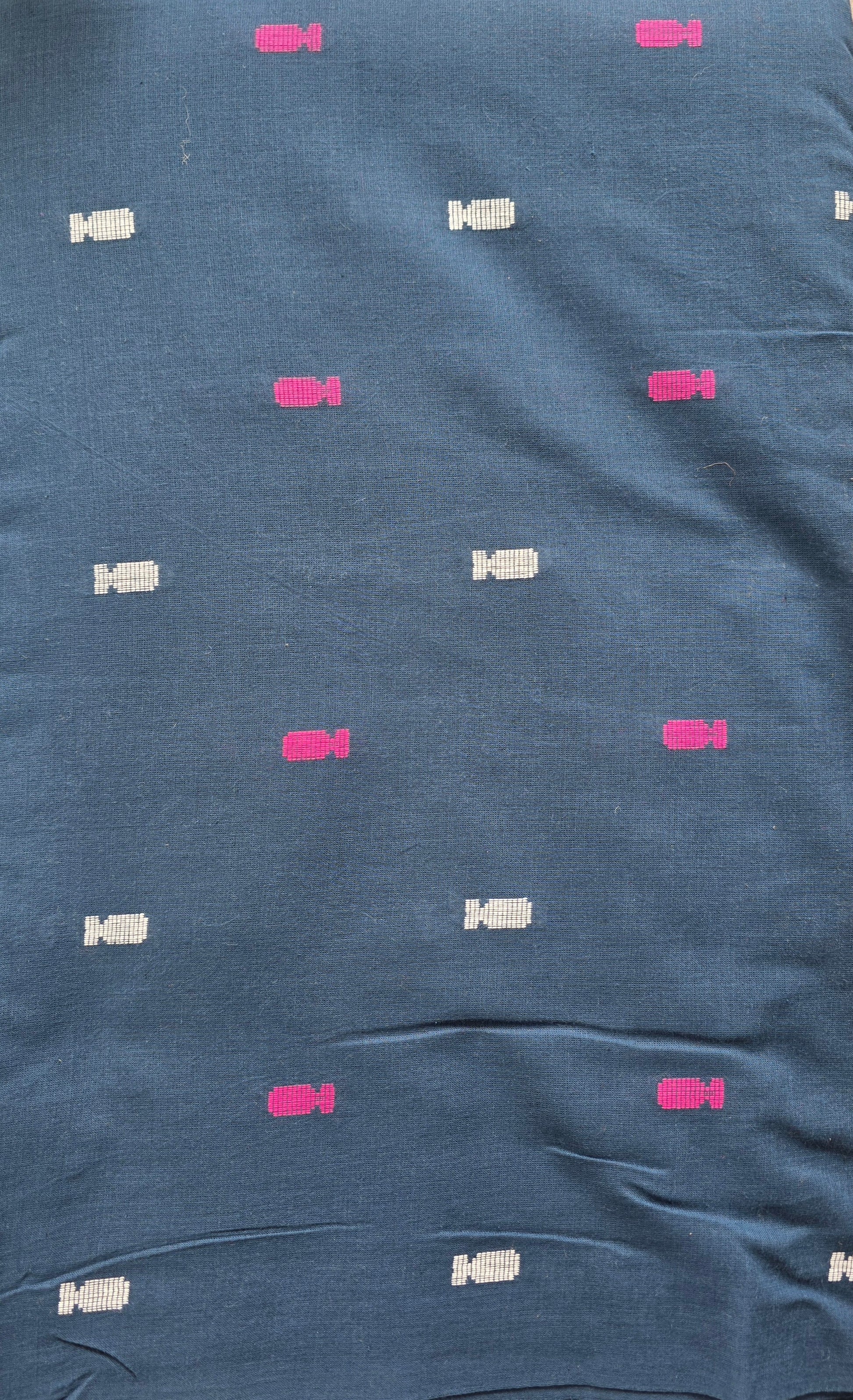 Pure handloom cotton running fabric is an unstitched, natural, hand-woven textile know for it’s soft, breathable , and durable qualities , made from pure cotton fibers and showcasing unique textures and designs from artisanal skill on traditional looms.