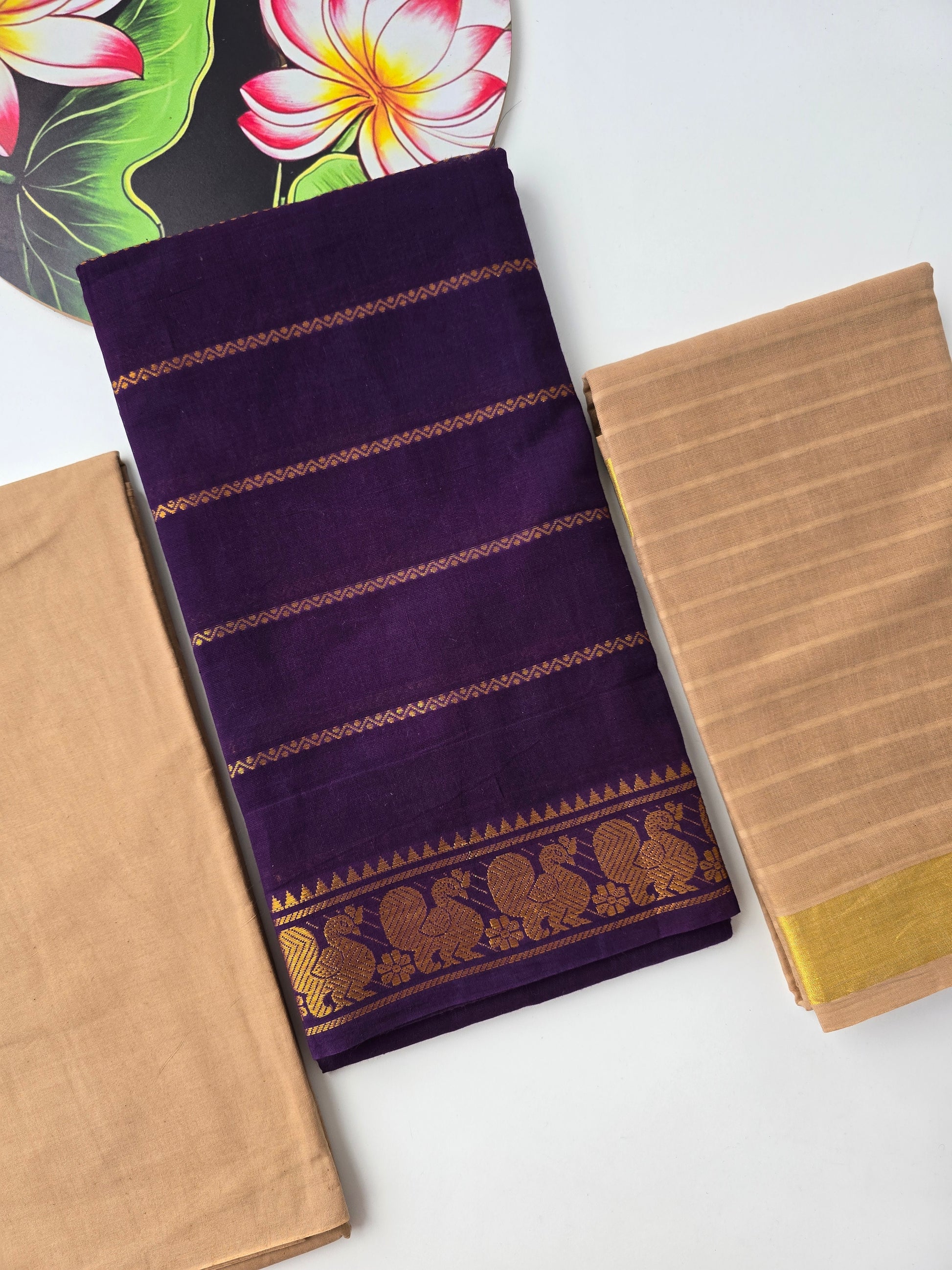 Pure cotton top with velthari zari lines with traditional border (2.5 mtrs)