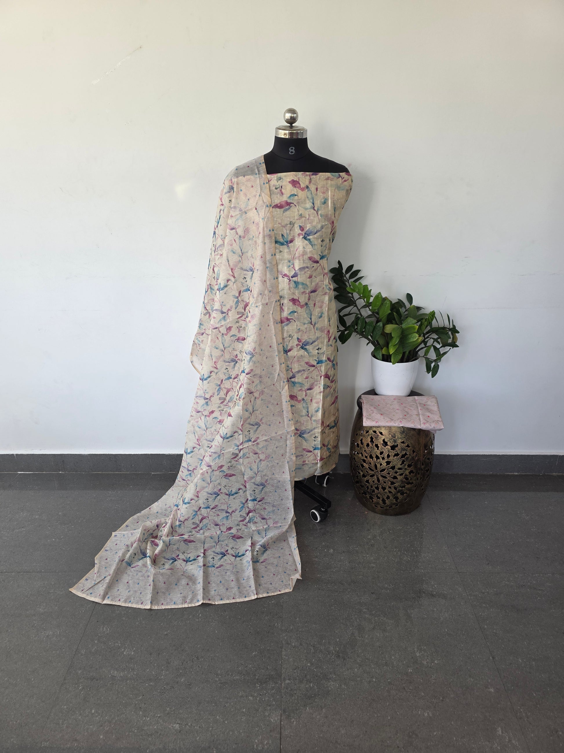 Embroidery digital Assam silk top , silk bottom, Assam silk shawl with digital print