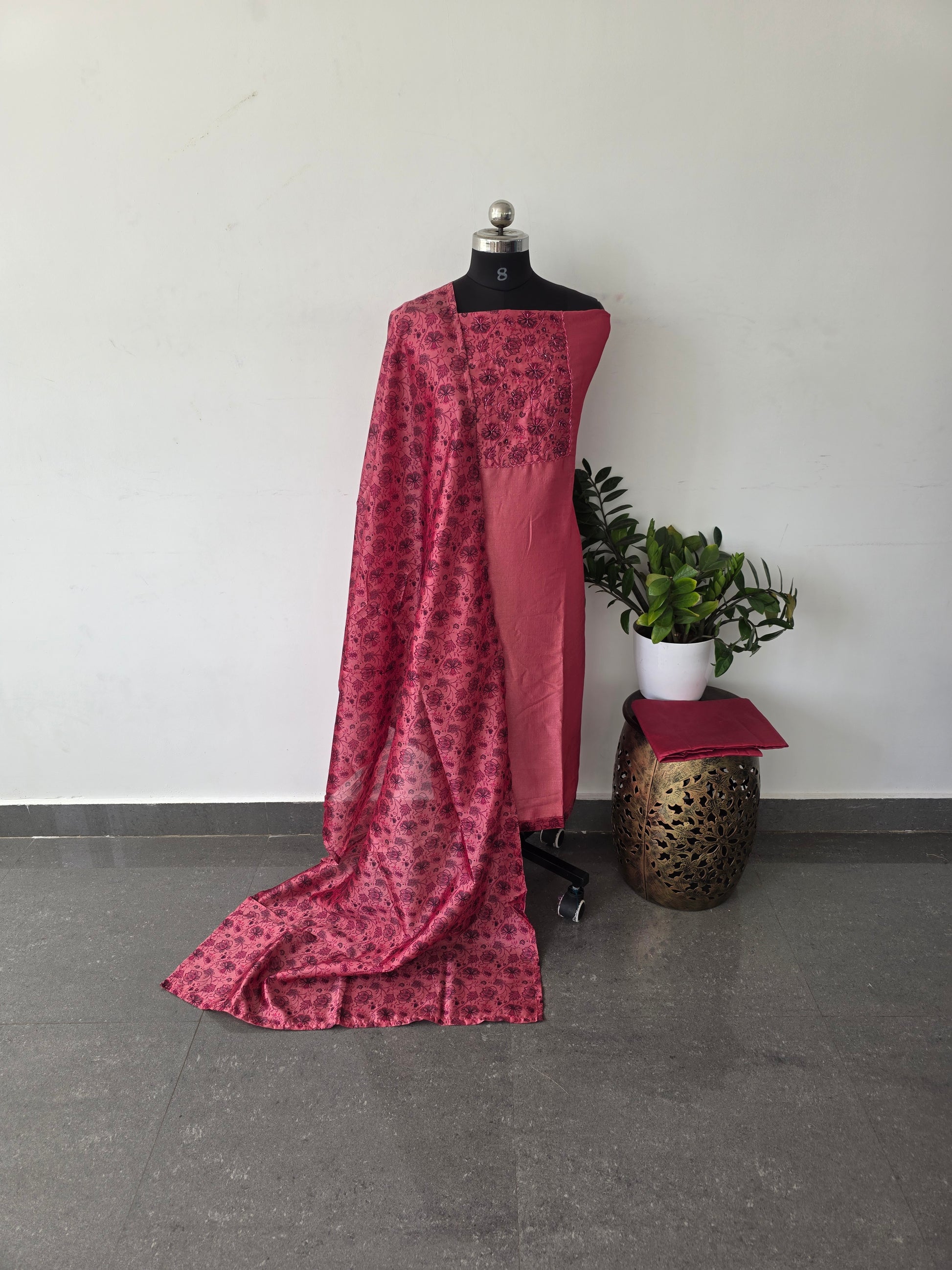 Top- Premium embroidery vichitra silk top with kalamkari yoke
