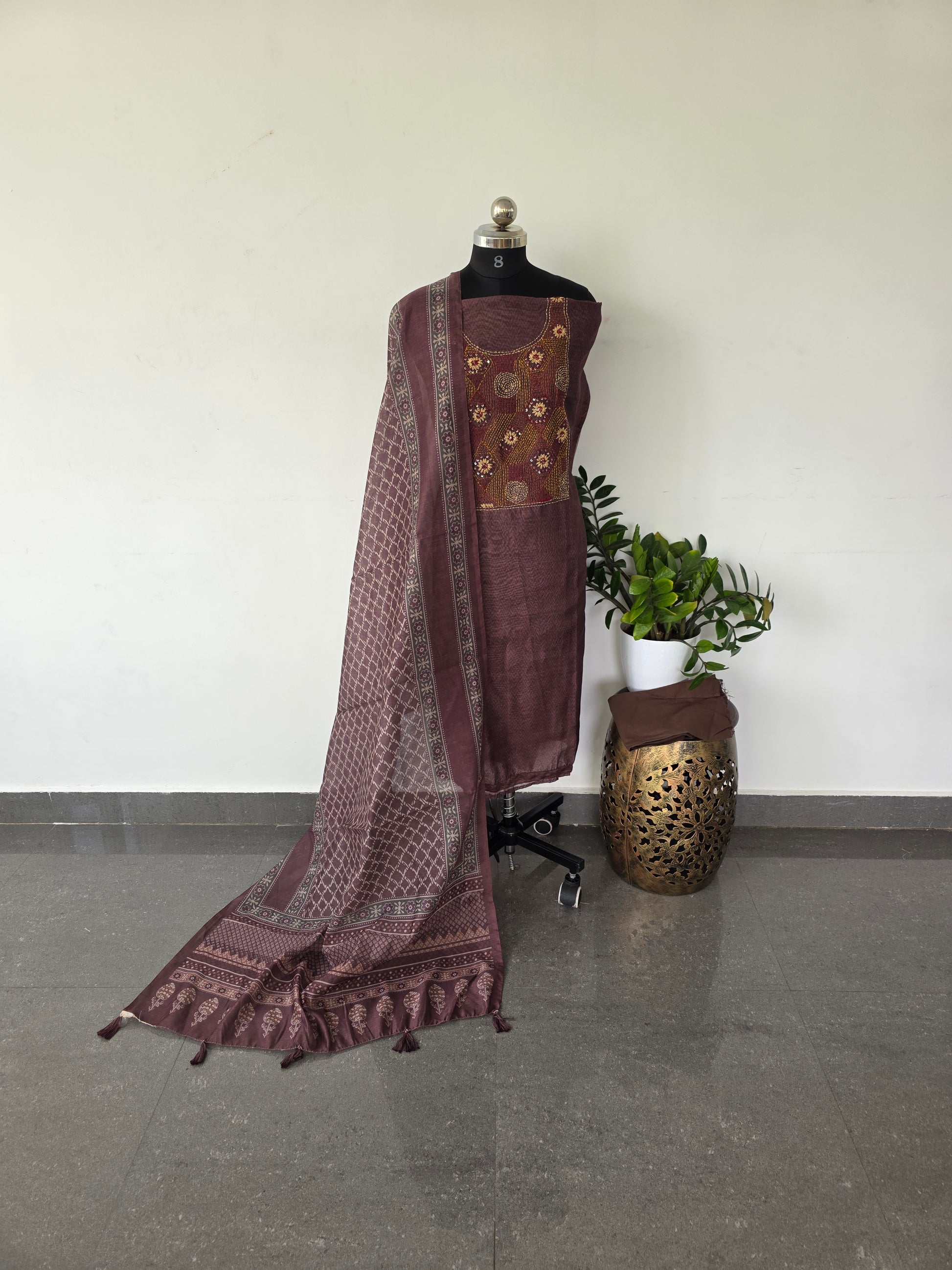 Top - Premium soft chanderi silk top with heavy embroidery work in the yoke