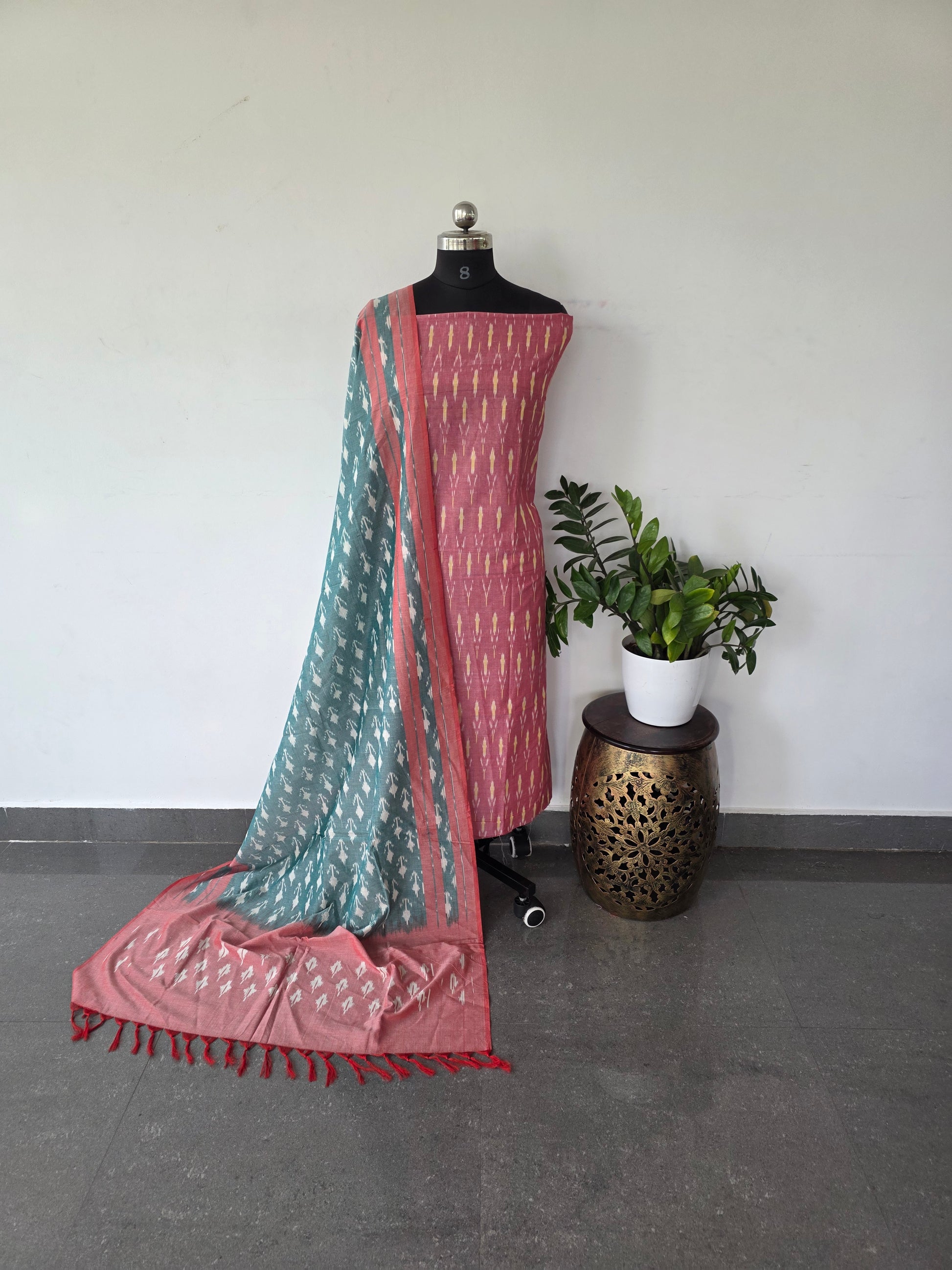 mercerised ikkat cotton top with double ikkat cotton shawl - MI20