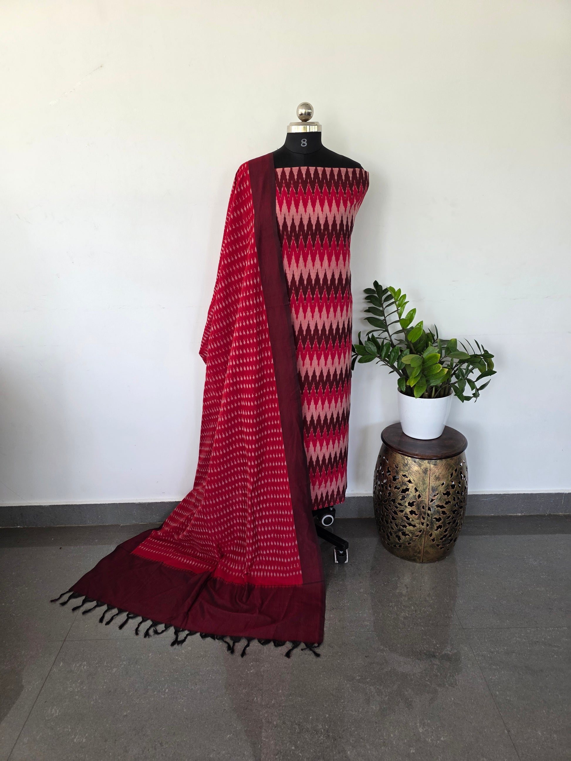 Duppatta - double ikkat cotton shawl with tassels [ 2.5 mtrs ]