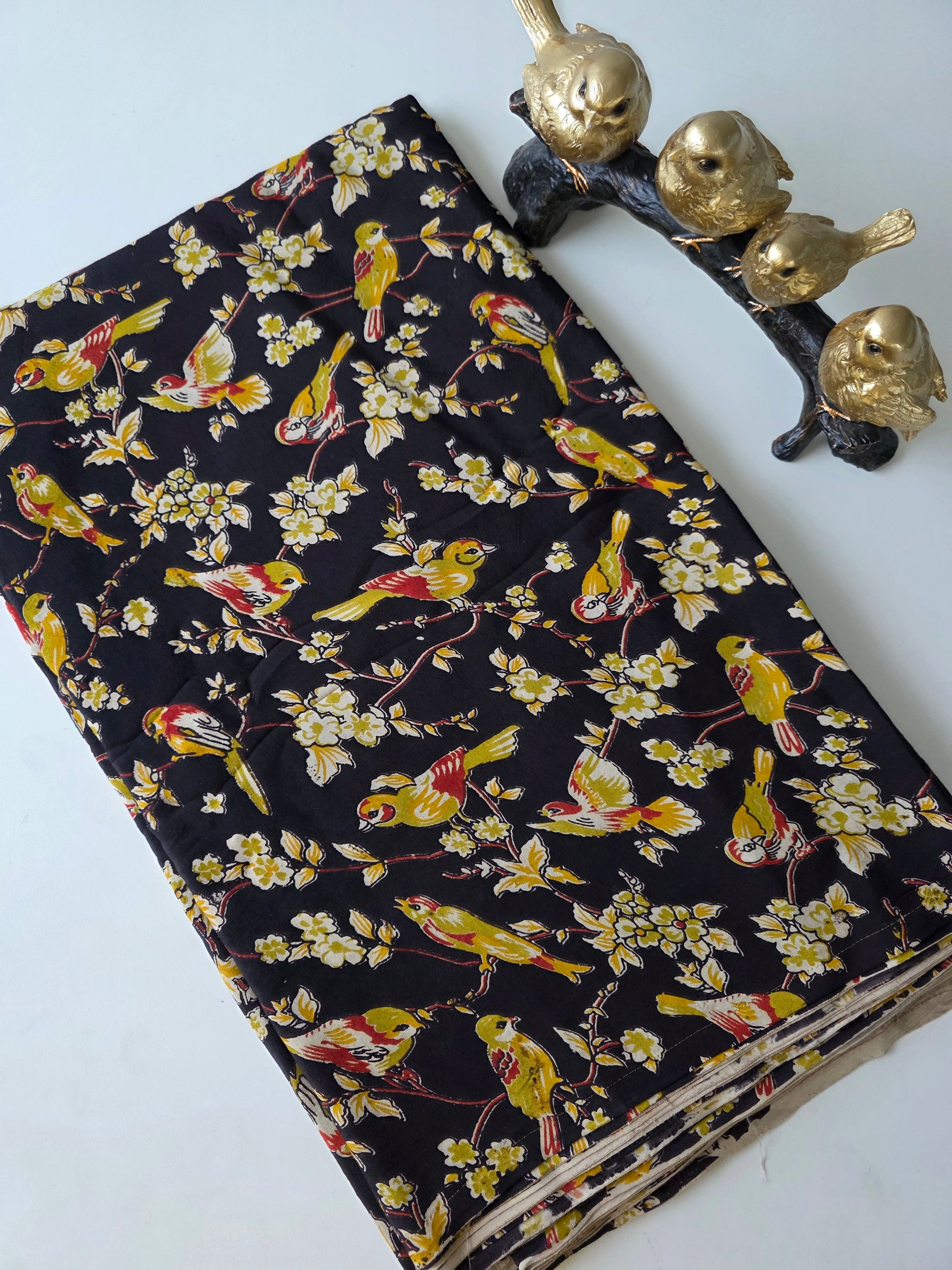 pure silk kalamkari running material crafted with the timeless art of hand block printing , this pure silk kalamkari fabric is made from natural cotton , offering a soft , breathable , and comfortable feel and pure cotton