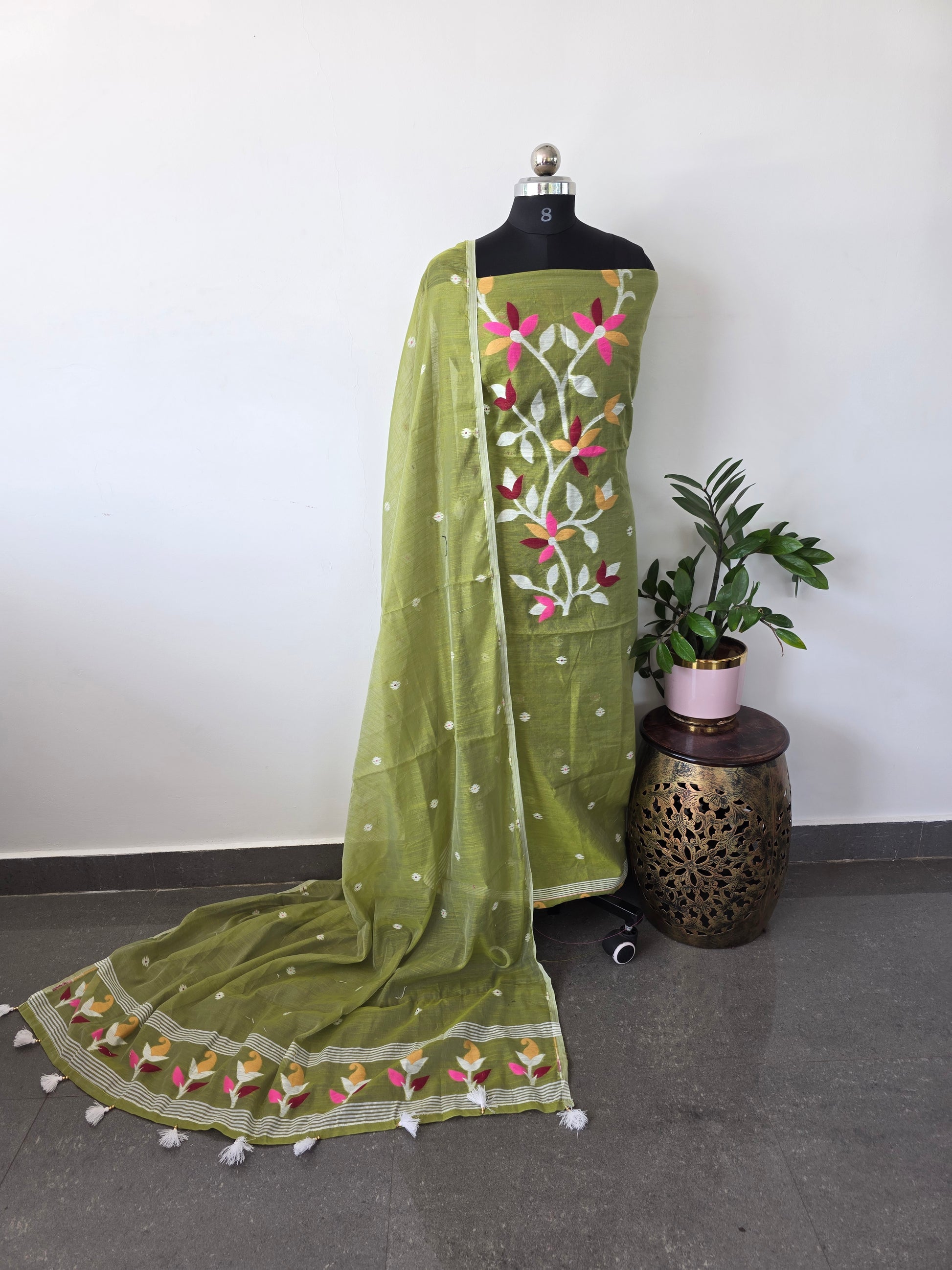 Premium jamdhani silk cotton top (2.5 mtrs) , No bottom, Premium jamdhani silk cotton duppatta (2.5 mtrs)