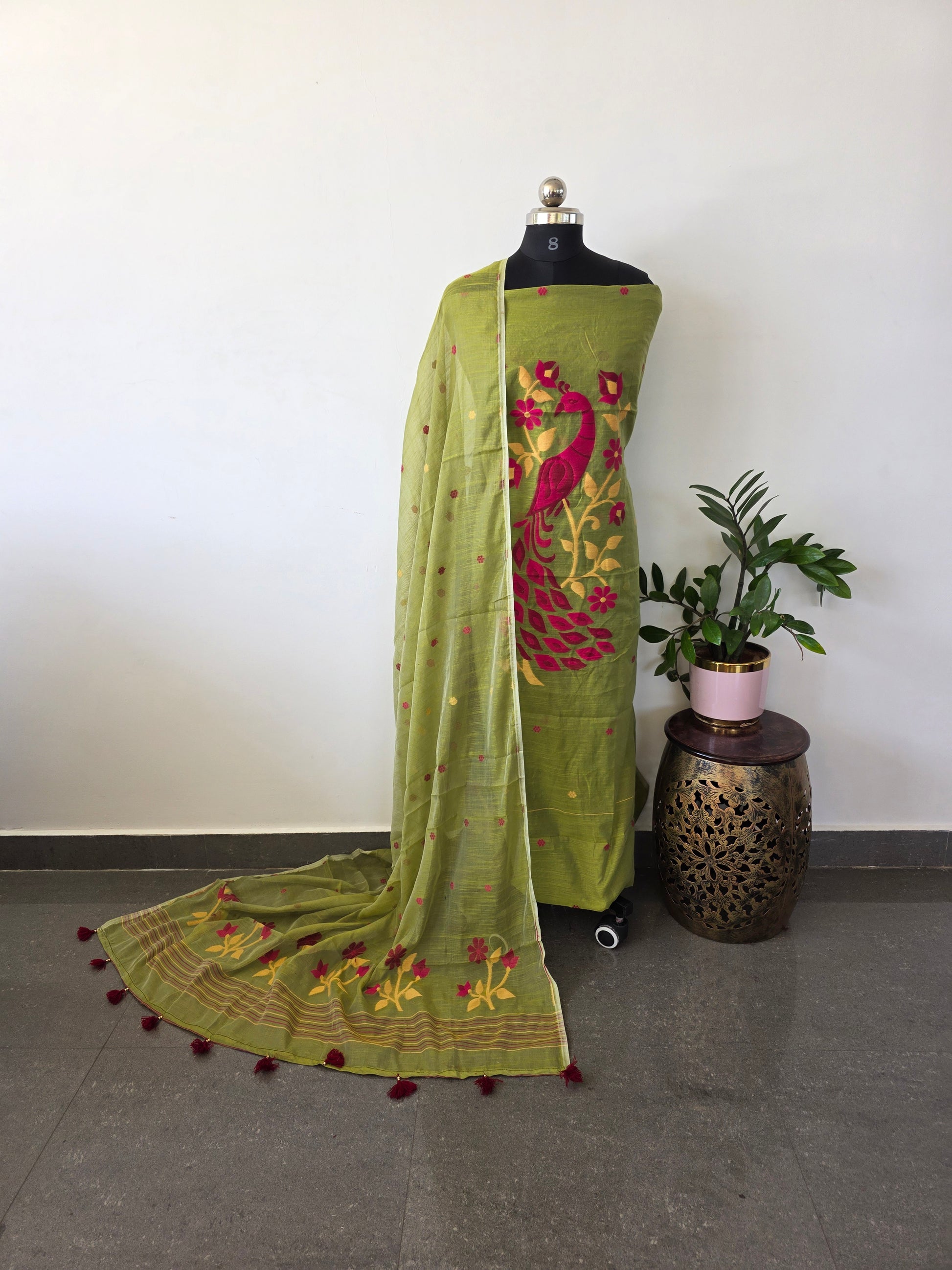 Premium jamdhani silk cotton top (2.5 mtrs) , No bottom, Premium jamdhani silk cotton duppatta (2.5 mtrs)