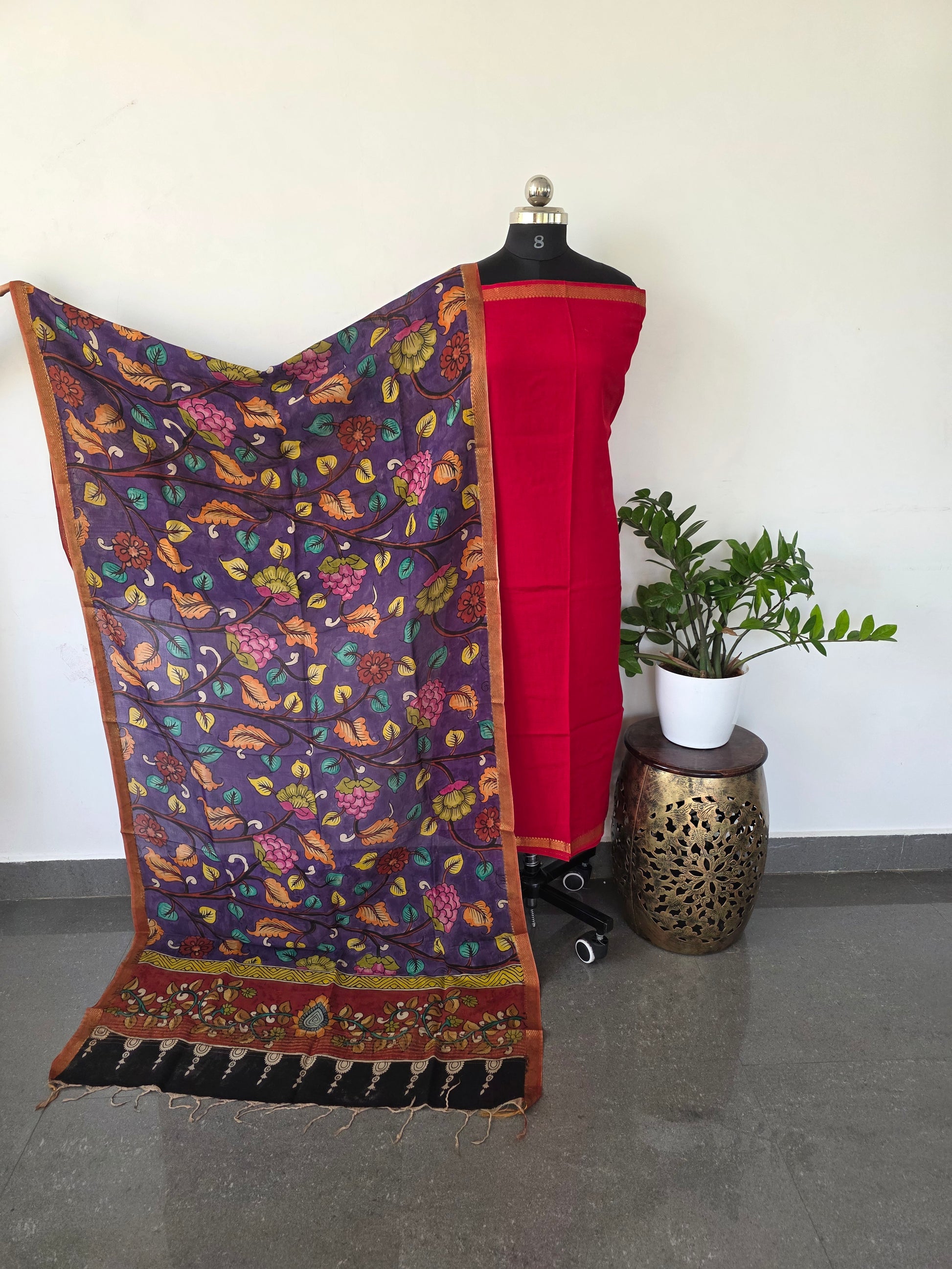 Duppatta- Authentic pure pen kalamkari mangalagiri silk with mangalagiri border and tassels (2.5 mtrs)
