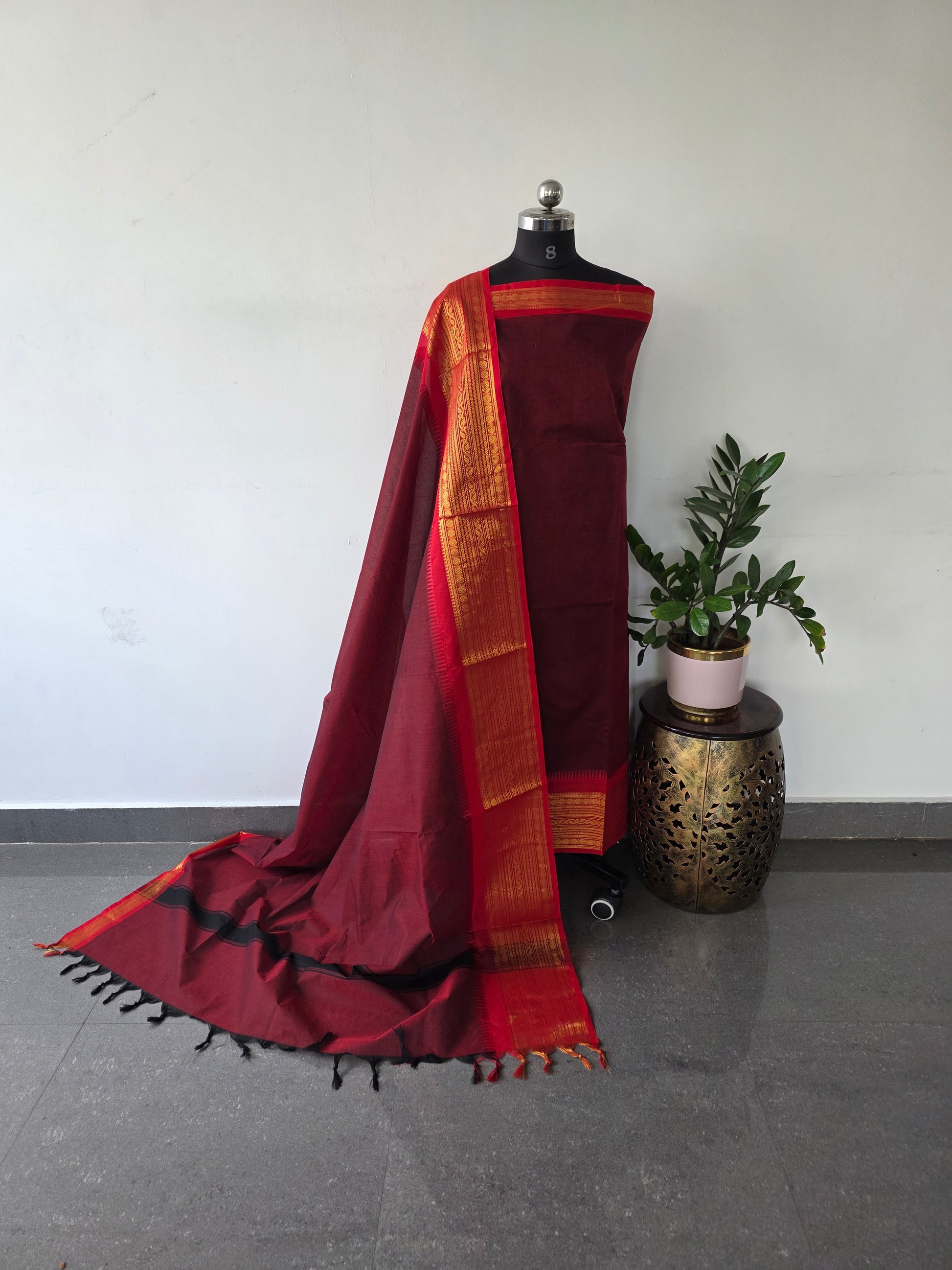 Top ,Duppatta - pure cotton with jacquard weavebin the body and rich zari border on both the sides [2.5mtrs top and 2.5 mtrs duppatta ]