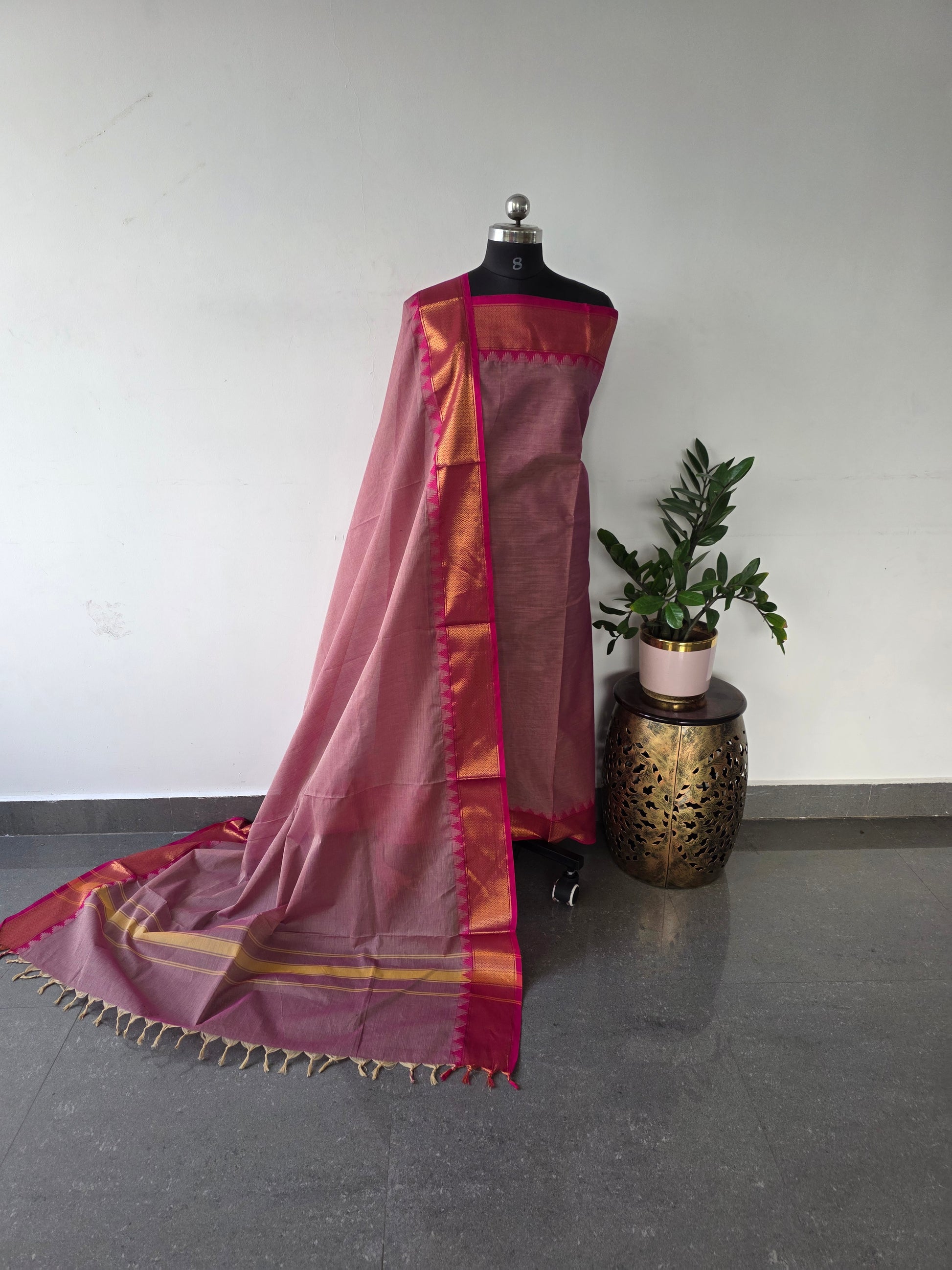 Top ,Duppatta - pure cotton with jacquard weavebin the body and rich zari border on both the sides [2.5mtrs top and 2.5 mtrs duppatta ]