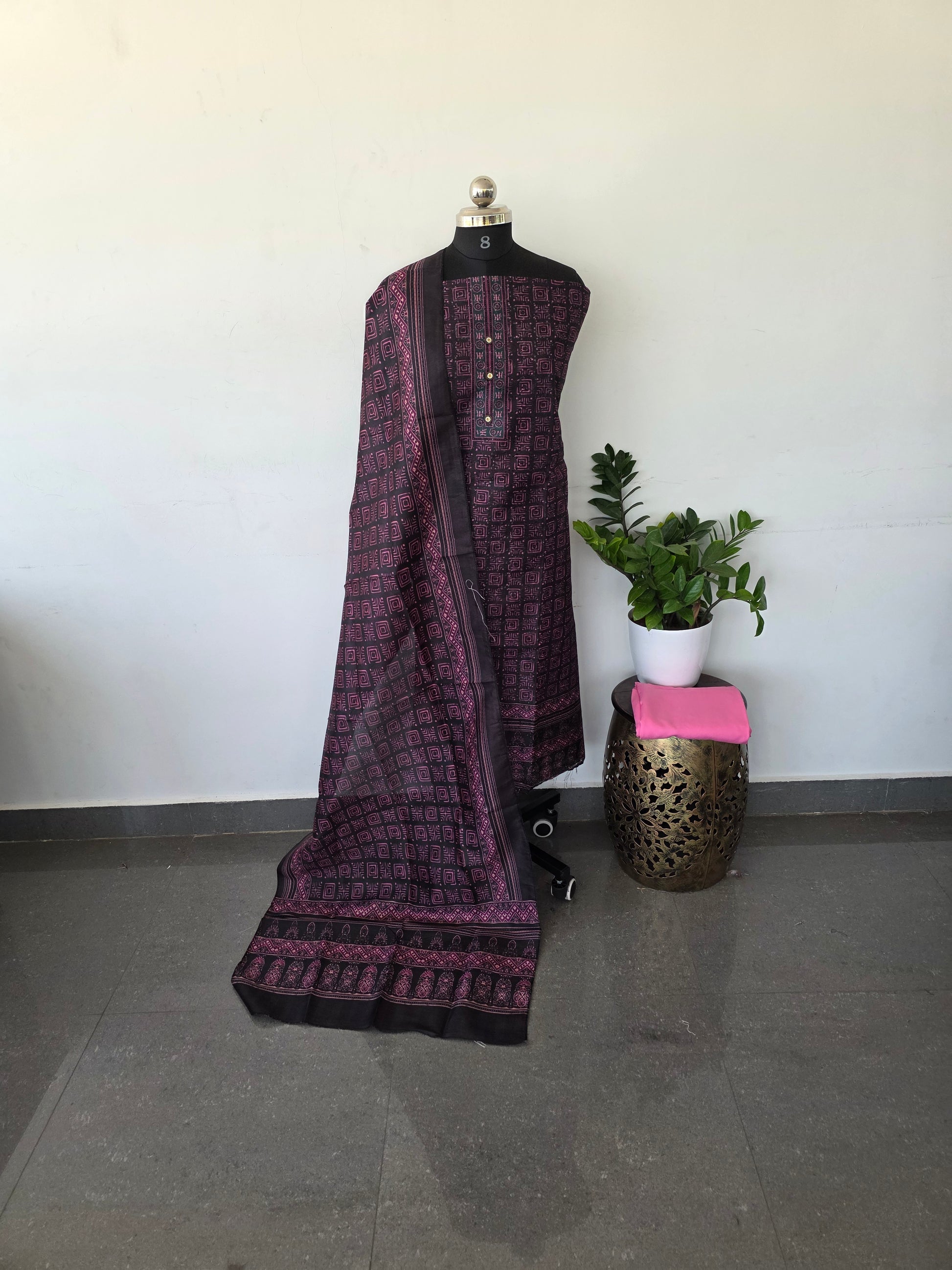 Experience the elegance of a superior digital silk ensemble featuring a set bottom, complemented by a silk dupatta and a high-quality digital Hakoba silk shawl. This premium collection combines refined craftsmanship with luxurious fabrics for a sophisticated look.