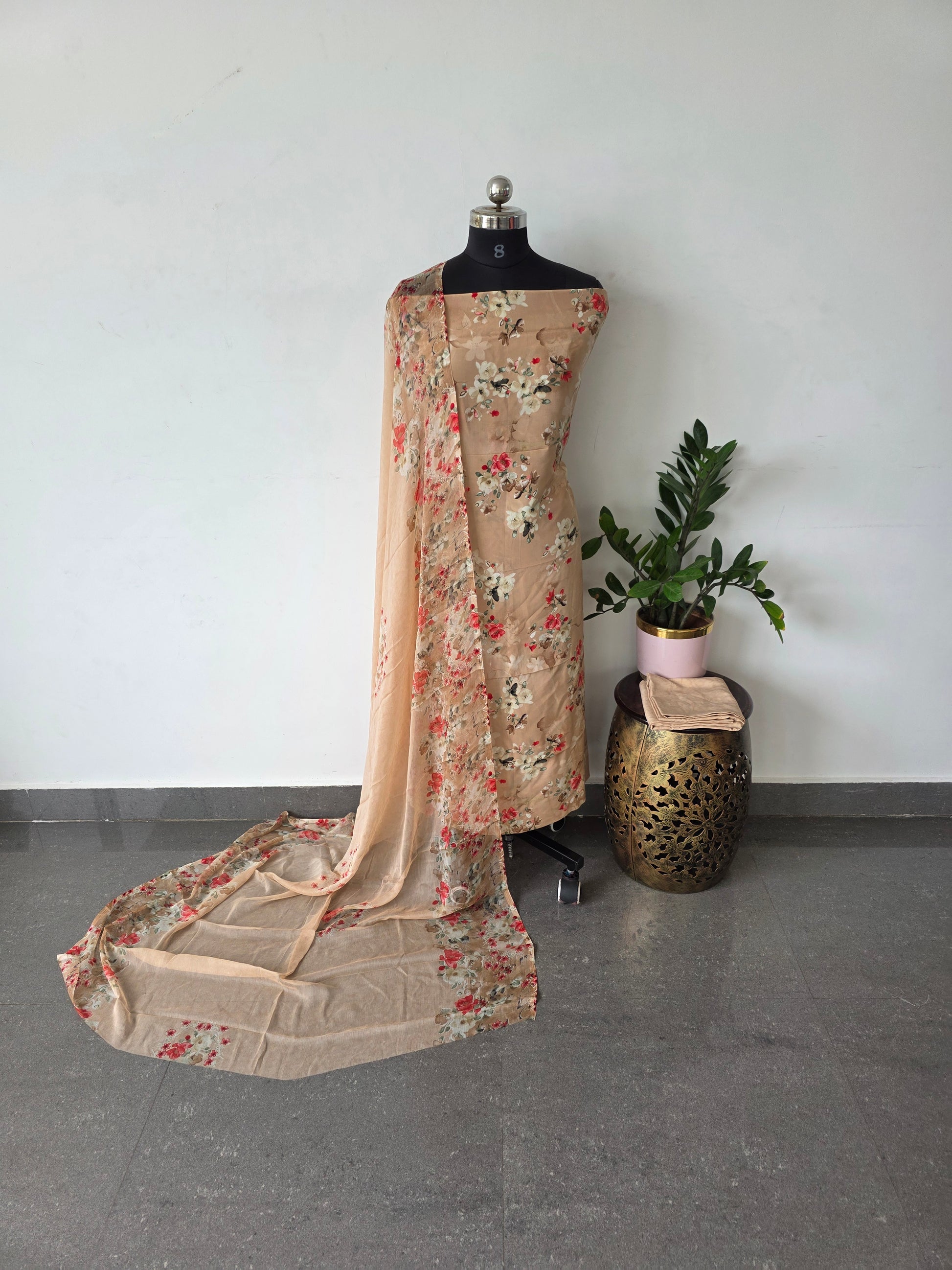 This set includes a premium French crepe top measuring approximately 2.40 meters, paired with a bottom and dupatta each about 2.25 meters in length.