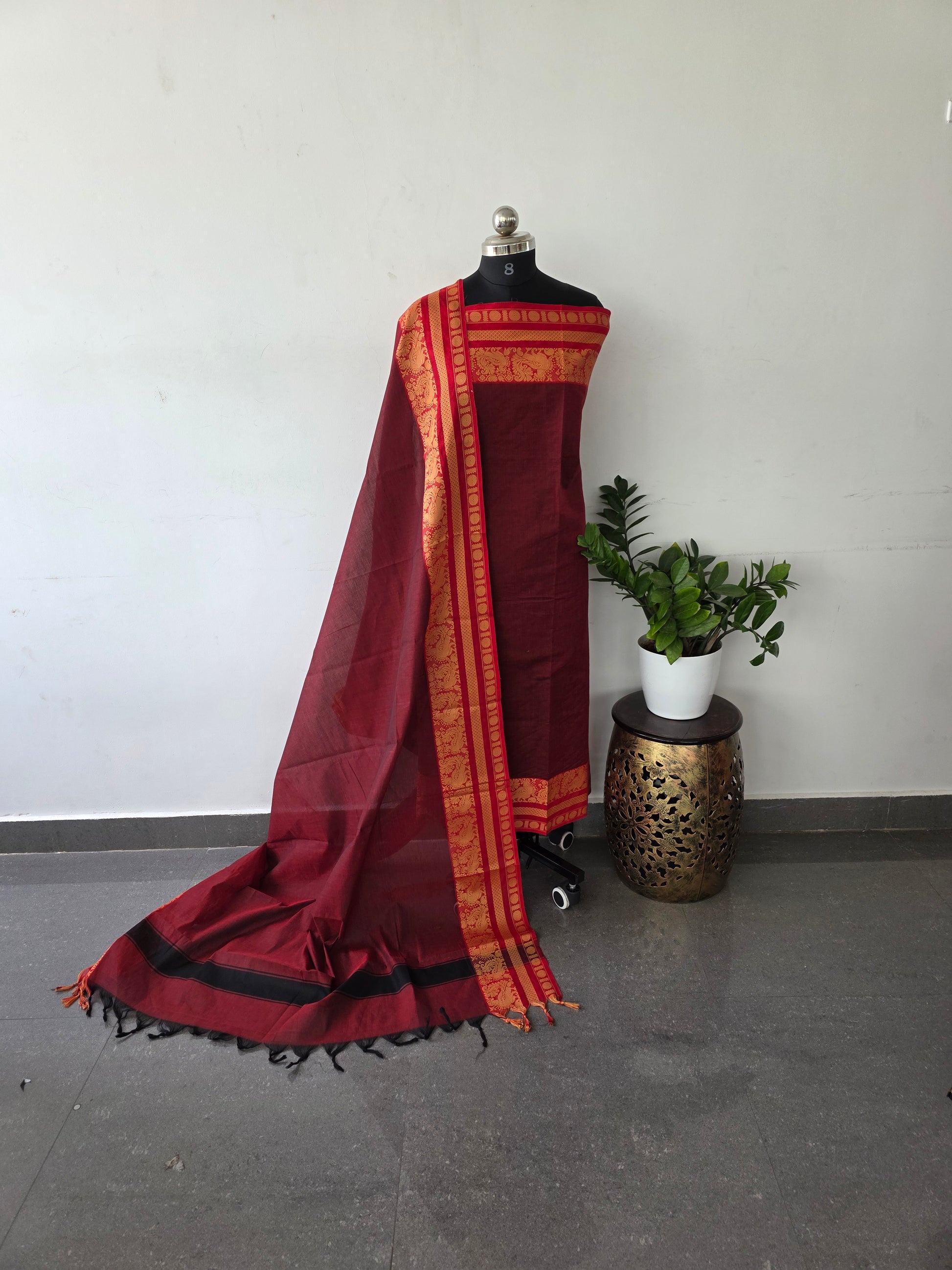 Premium kanchi cotton [ 2 pc set ] - maroon