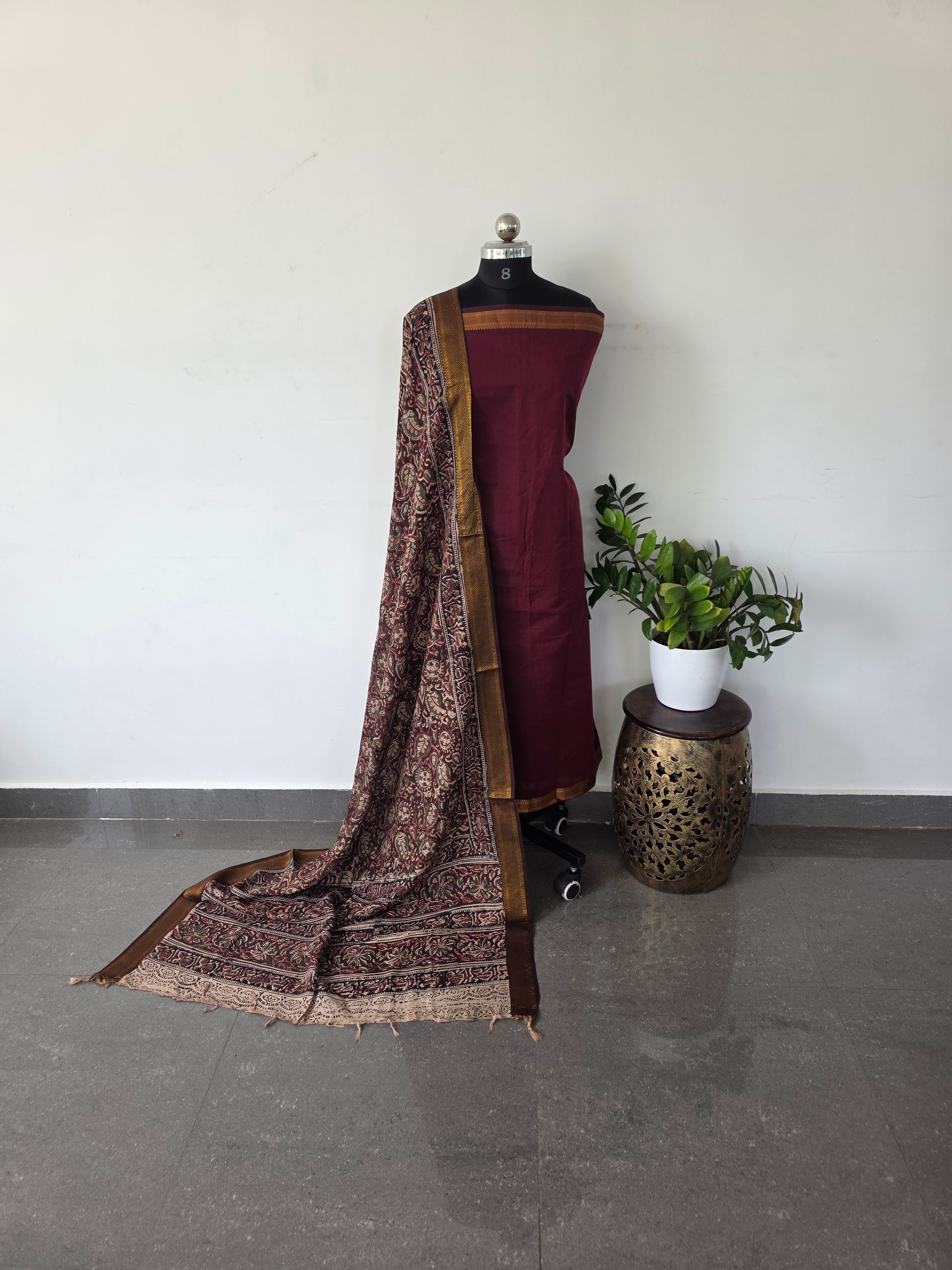 Premium mangalagiri cotton top with handblock pure kalamkari silk shawl - MK5