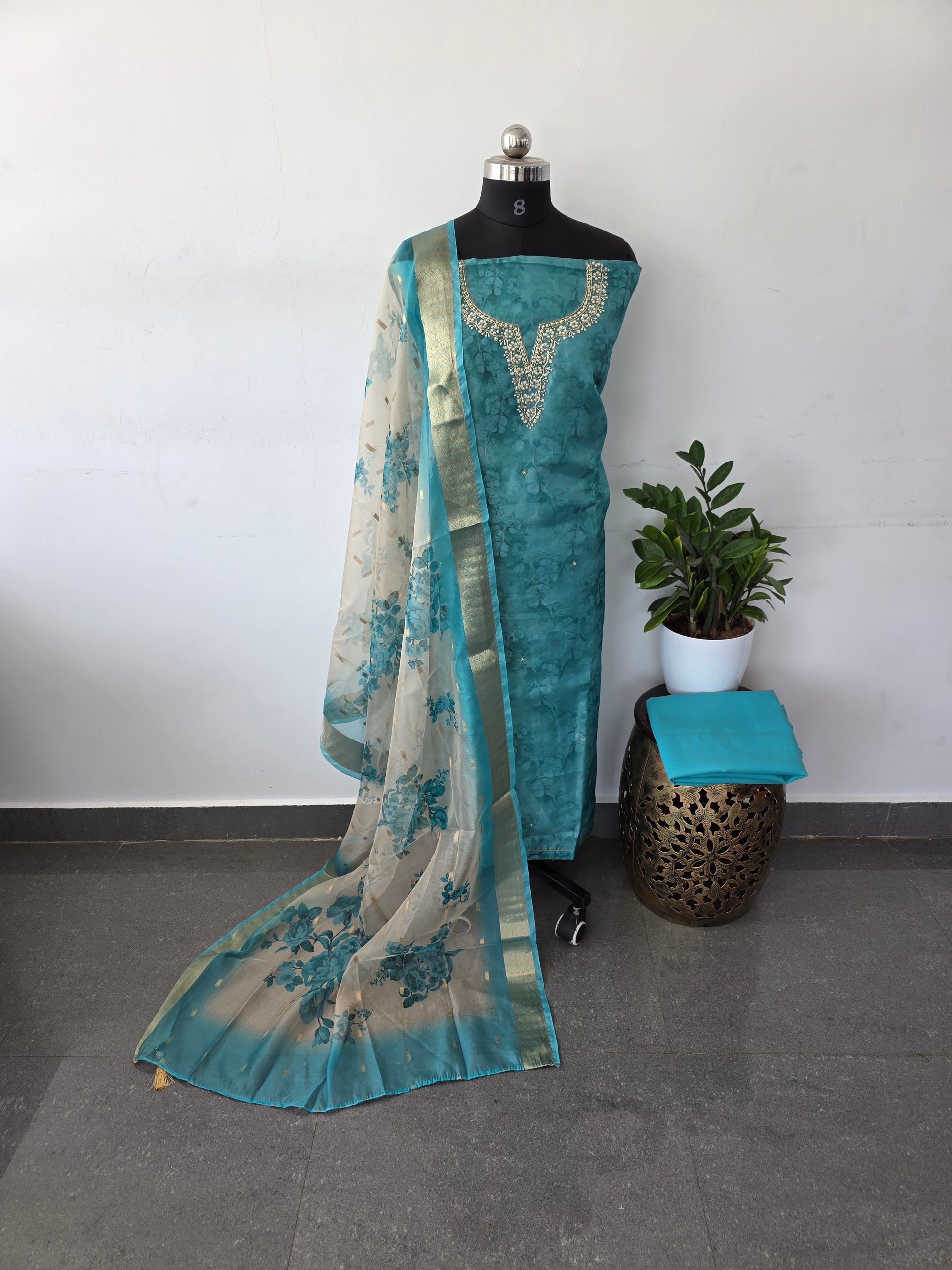 Top - premium shimmer silk top with embroidery buttas allover and heavy handwork embroidery in neck [with inner lining ]