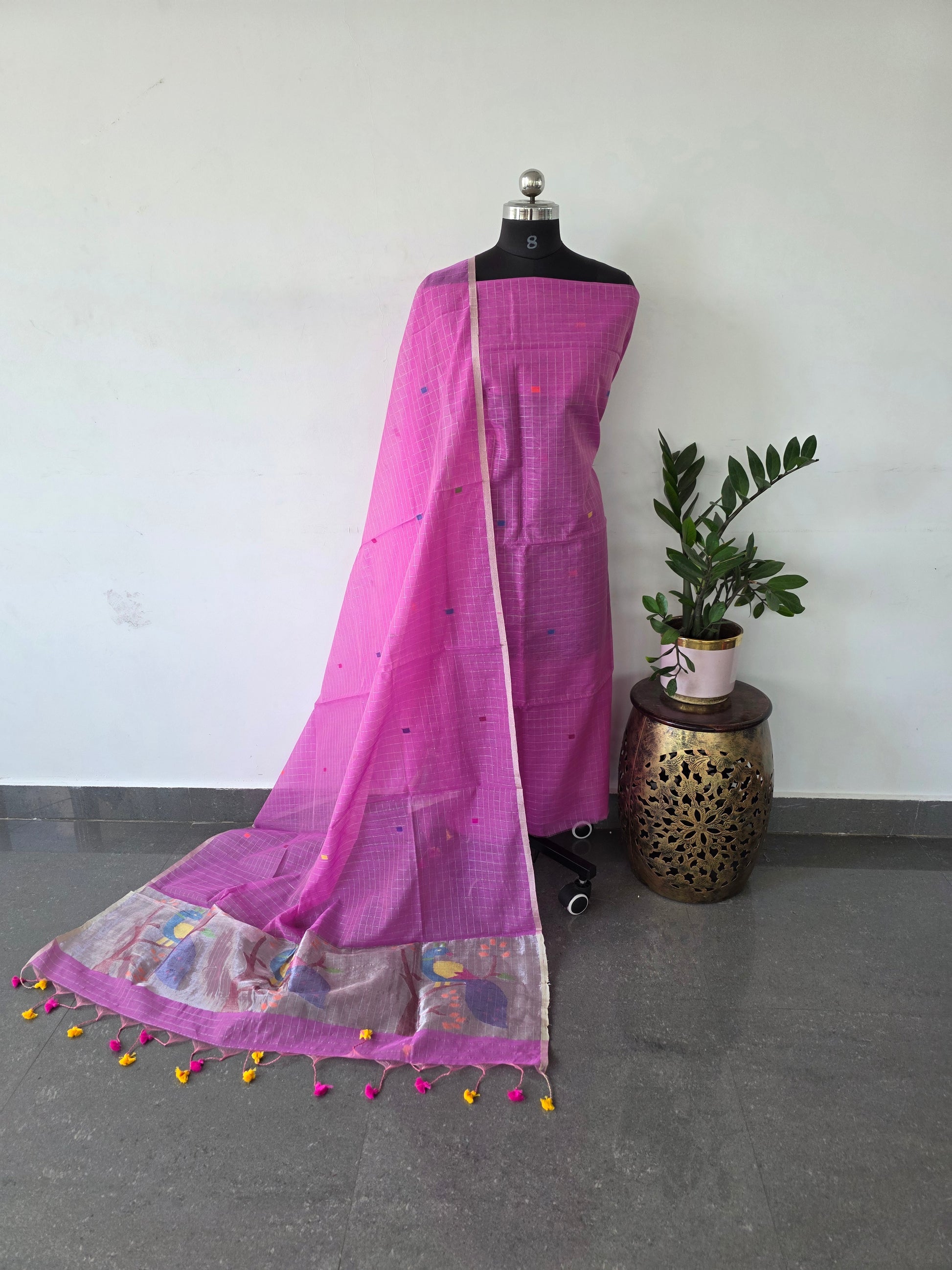 Premium zari checked muslin jamdhani top, premium zari checked muslin jamdhani duppatta with tissue paithani pallu and tassels