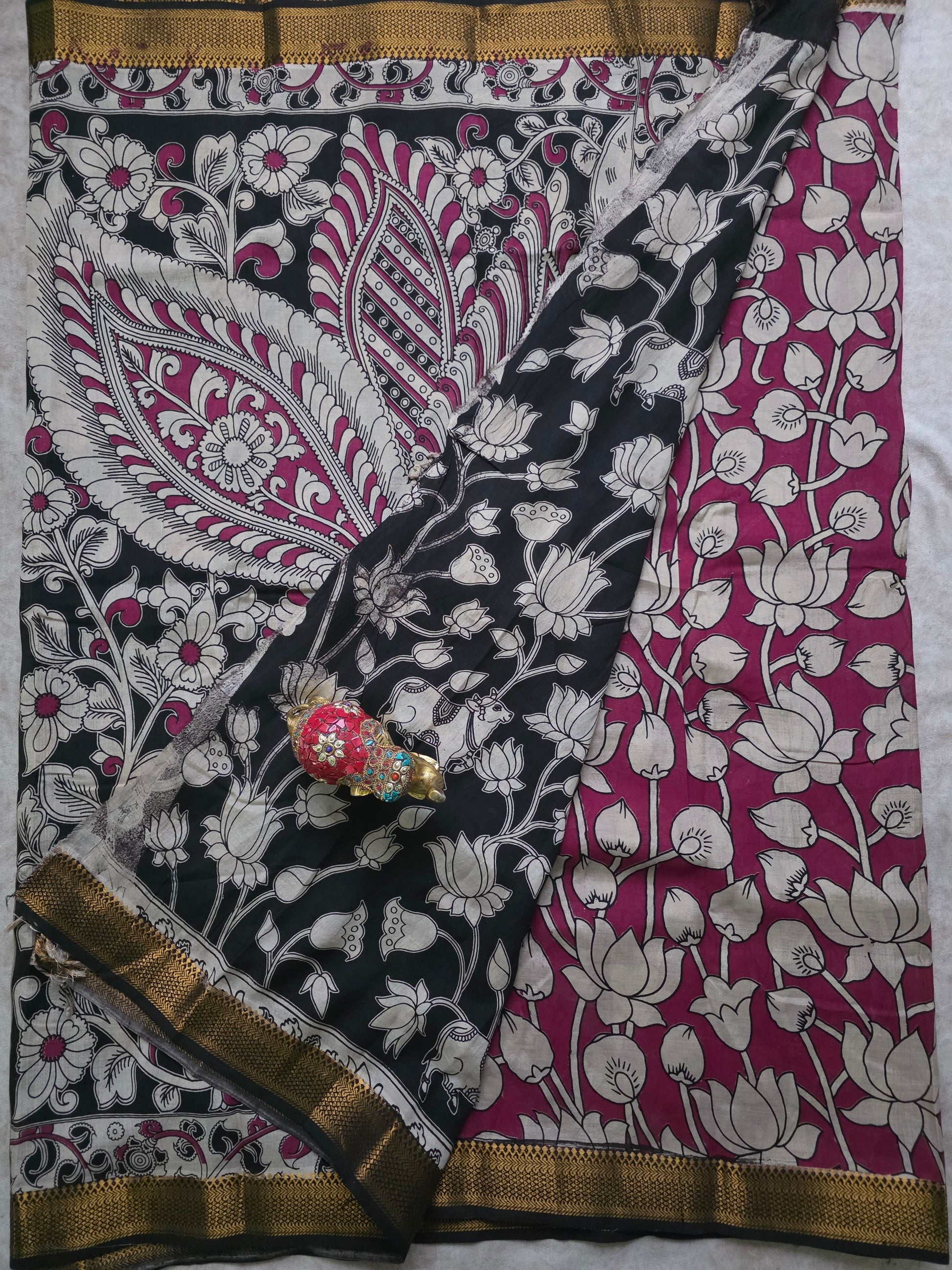 pure chennuri kalamkari silk saree with nizam border - KQ4