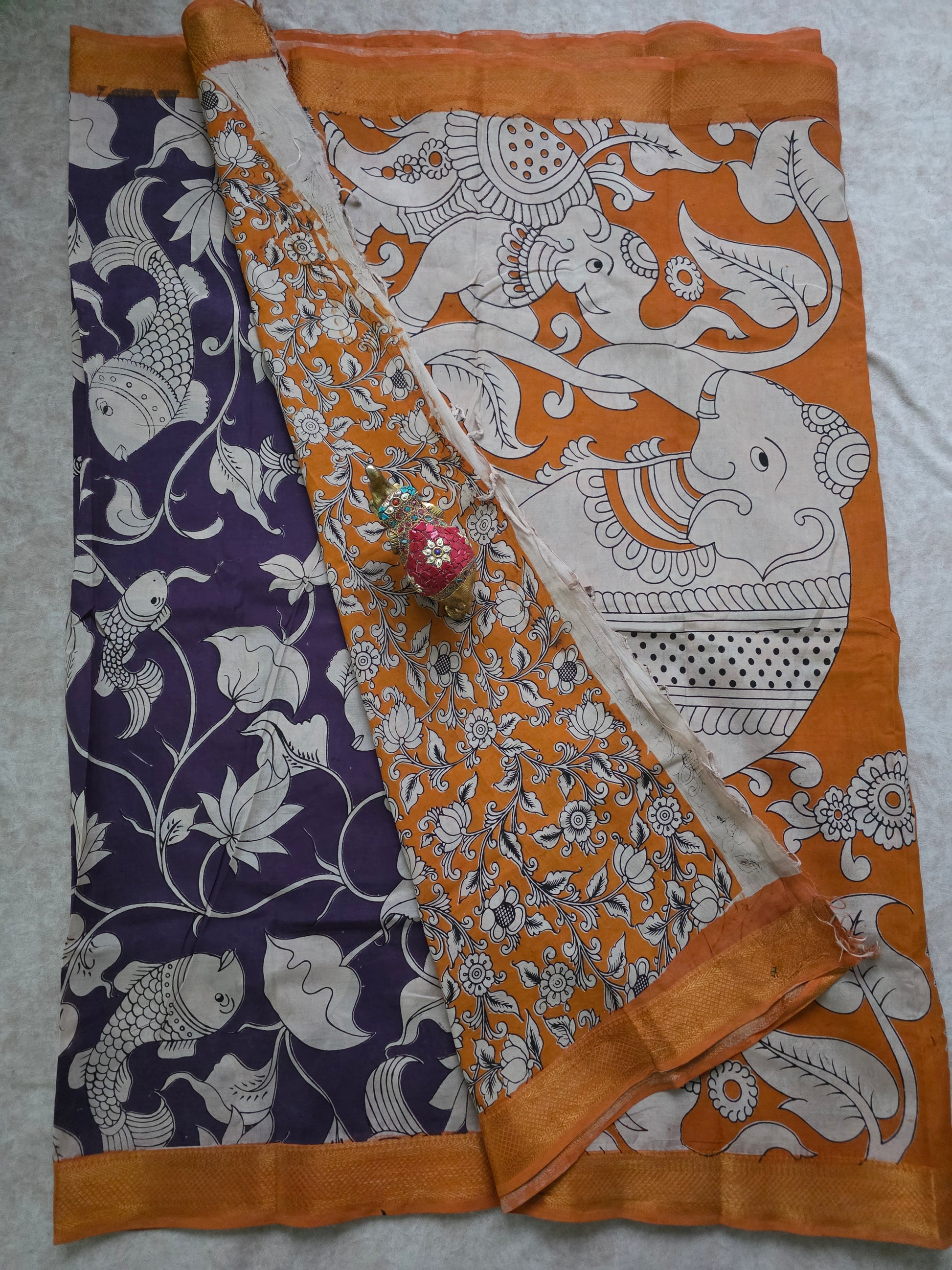 pure chennuri kalamkari silk saree with nizam border - KQ9