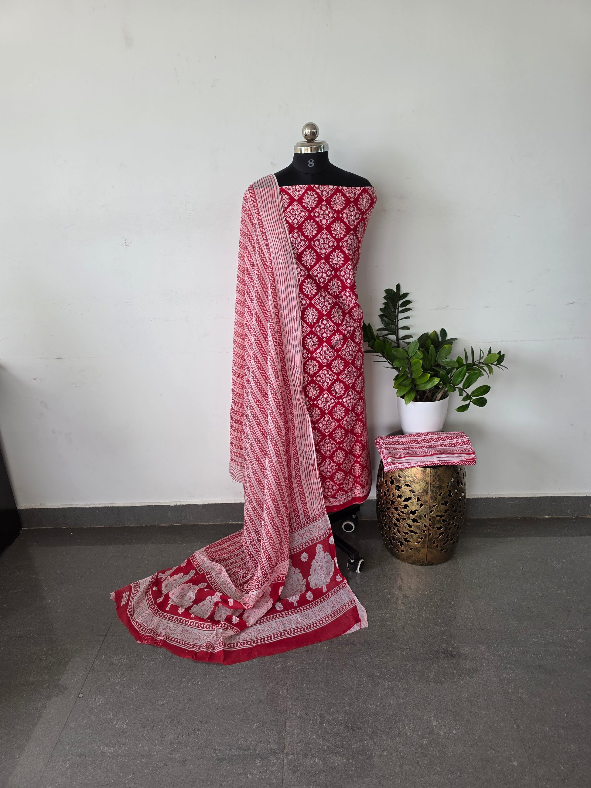 Pure jaipuri cotton set - Peacock red