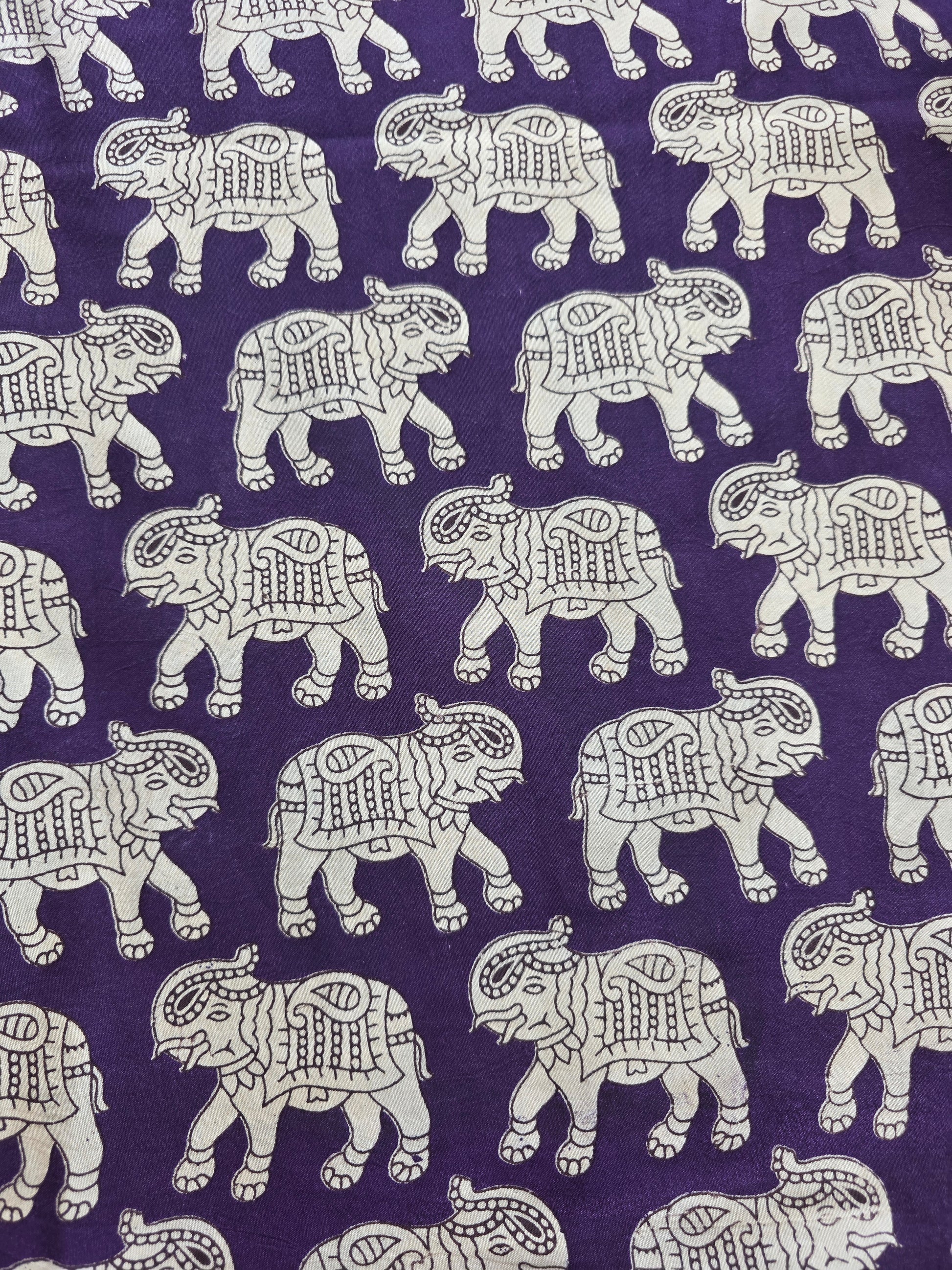 pure silk kalamkari running material crafted with the timeless art of hand block printing , this pure silk kalamkari fabric is made from natural cotton , offering a soft , breathable , and comfortable feel and pure cotton