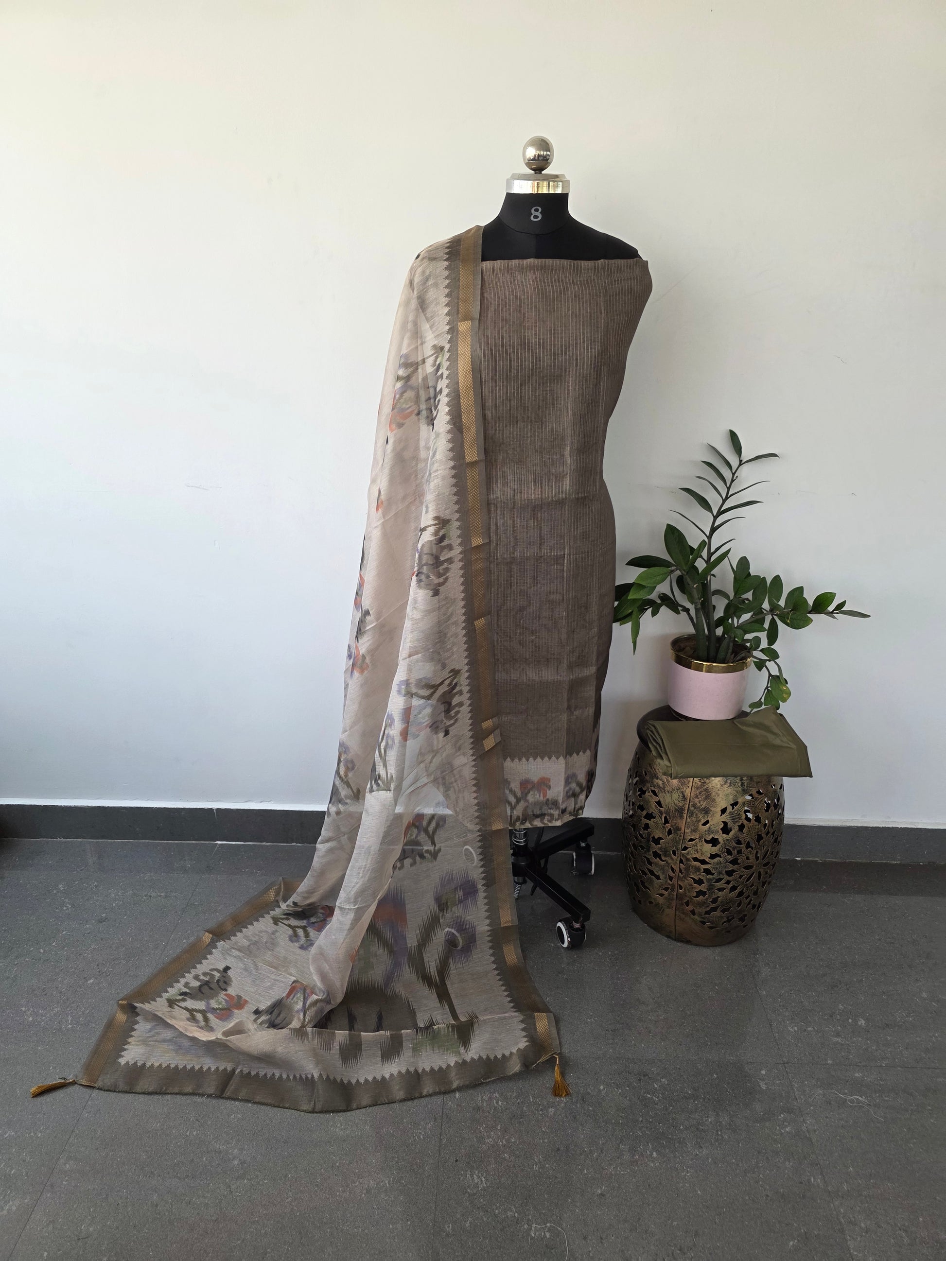 Duppatta- Moonga tissue silk shawl with zari border and tassels