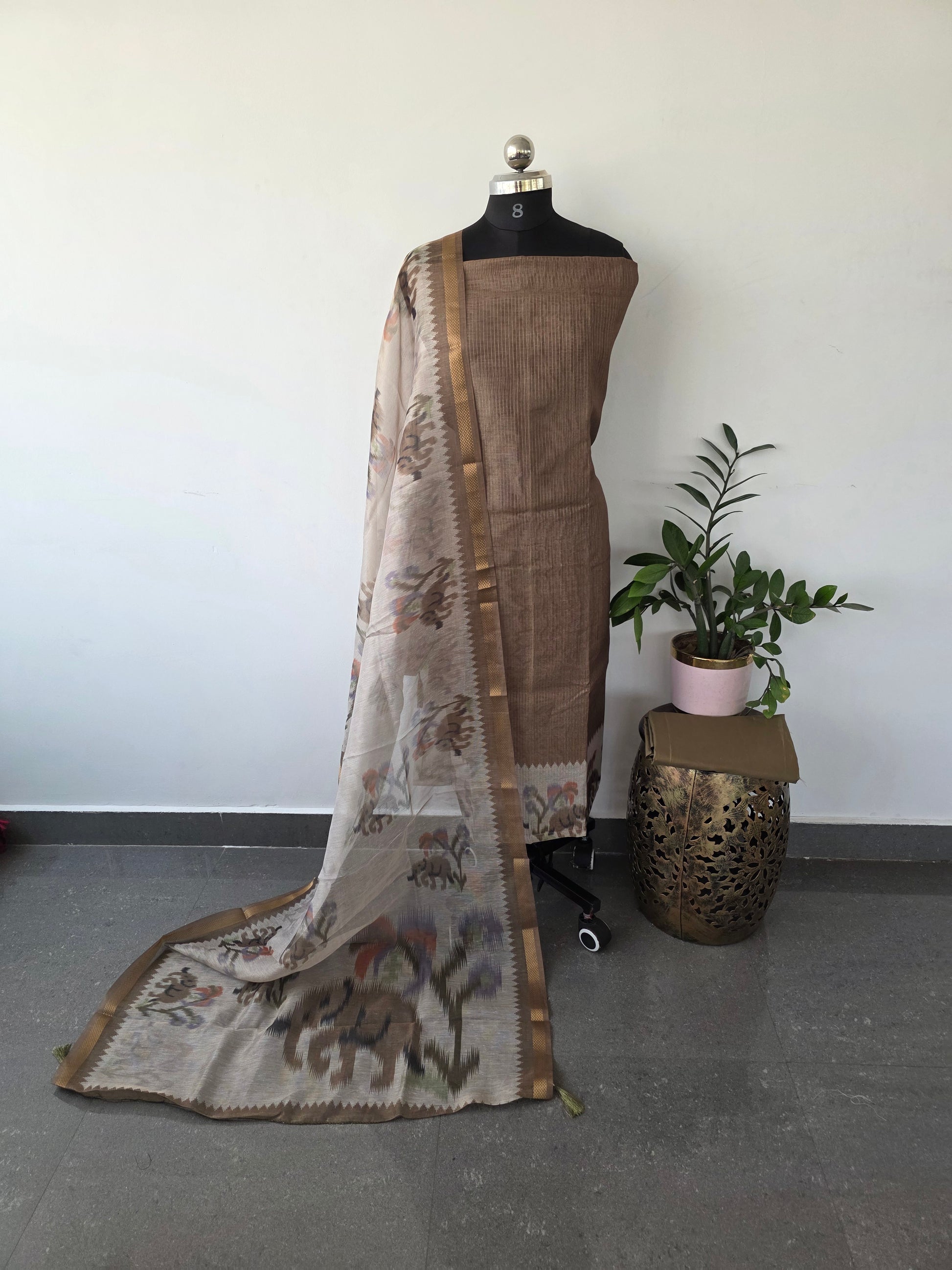 Duppatta- Moonga tissue silk shawl with zari border and tassels